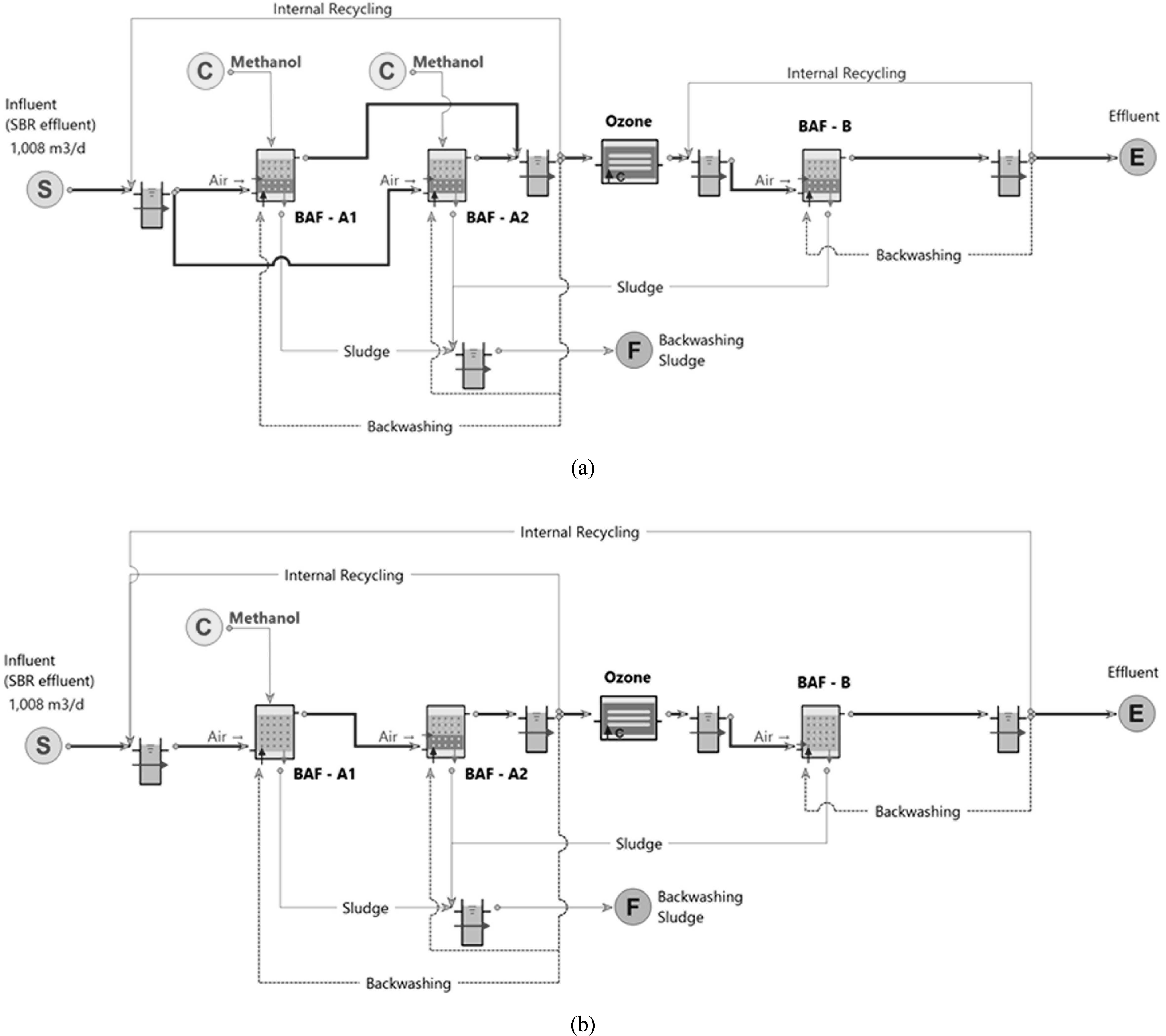 Fig. 10. Flow diagram of (a) existing BAF process and (b) modified BAF process.