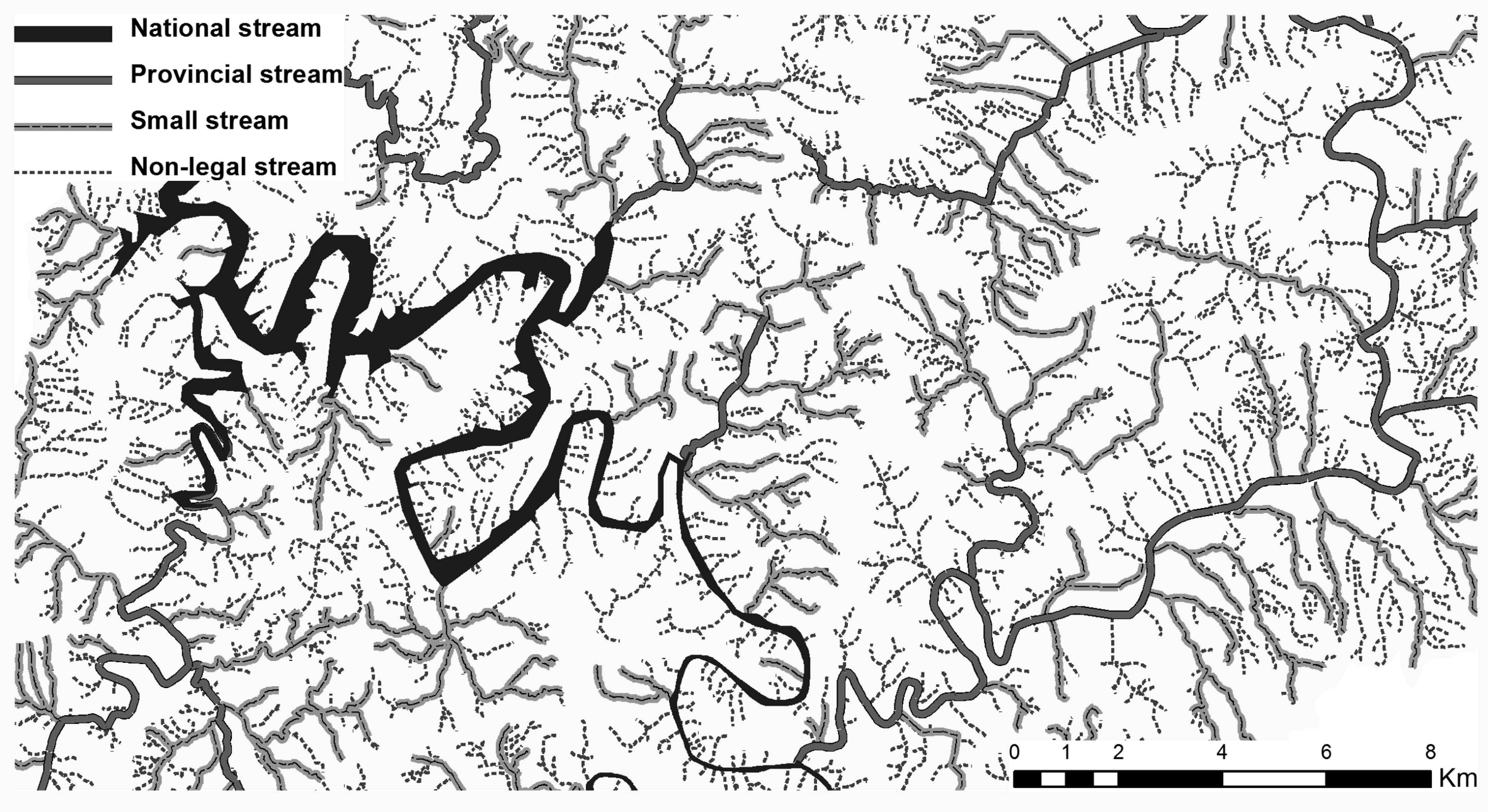 수질 개선 차원의 환경 개선을 넘어 ‘생태 적 가치 보호’라는 패러다임의 전환을 맞이하였다(Kim and Han, 2008; MOE, 2006). 최상류 하천(headwater streams)은 총연장과 유역면적에 있어 전체 하천에서 큰 비중을 차지 하며, 수변림으로부터 상당량의 유기물질과