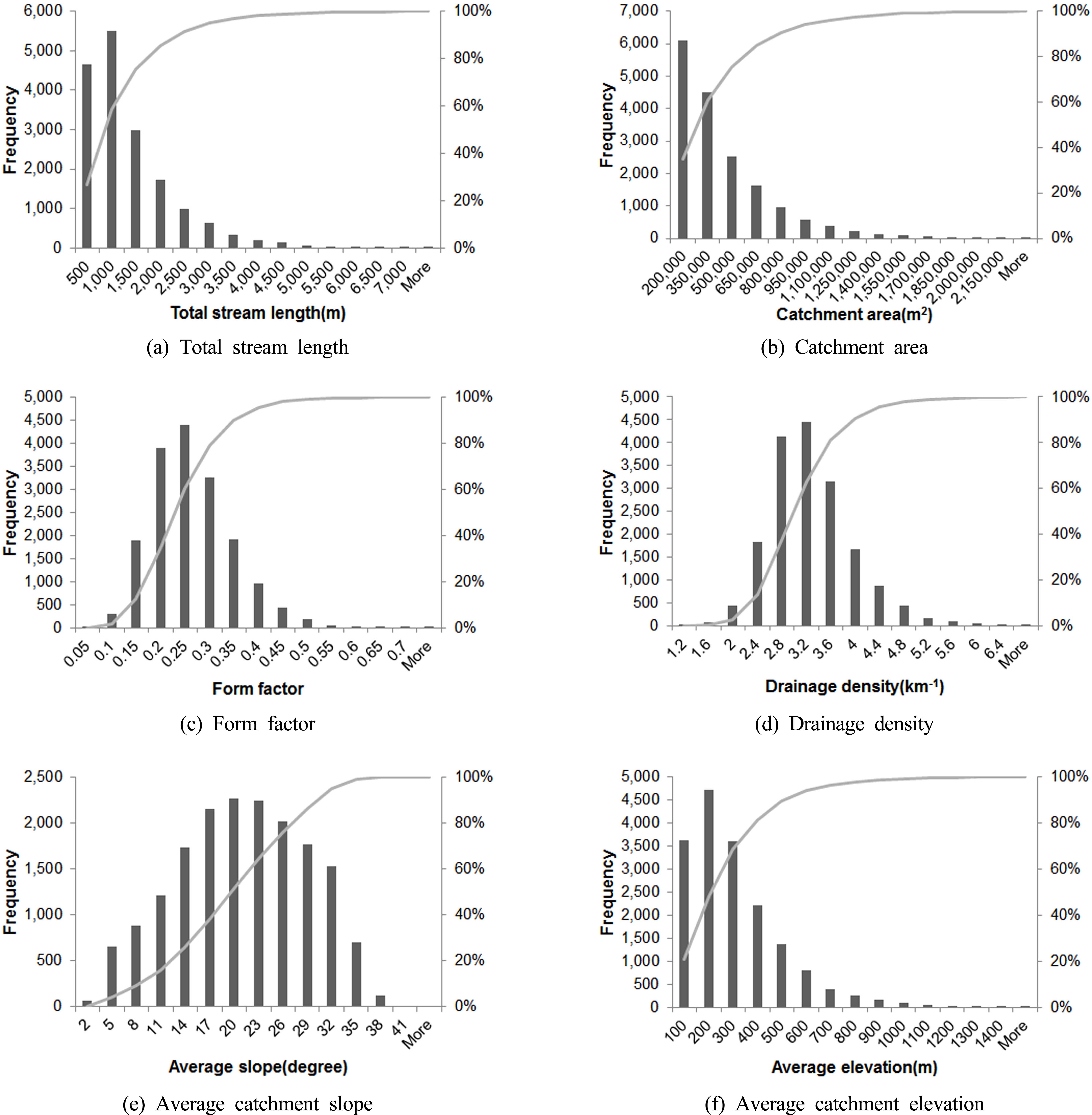 방법론을 제시하고, 개별 도랑유역의 규모 와 형태, 지형 등 지형 특성 인자를 분석하여 도랑유역에 대하여 정량적 수치를 제시하였다. 한편 하천차수에
