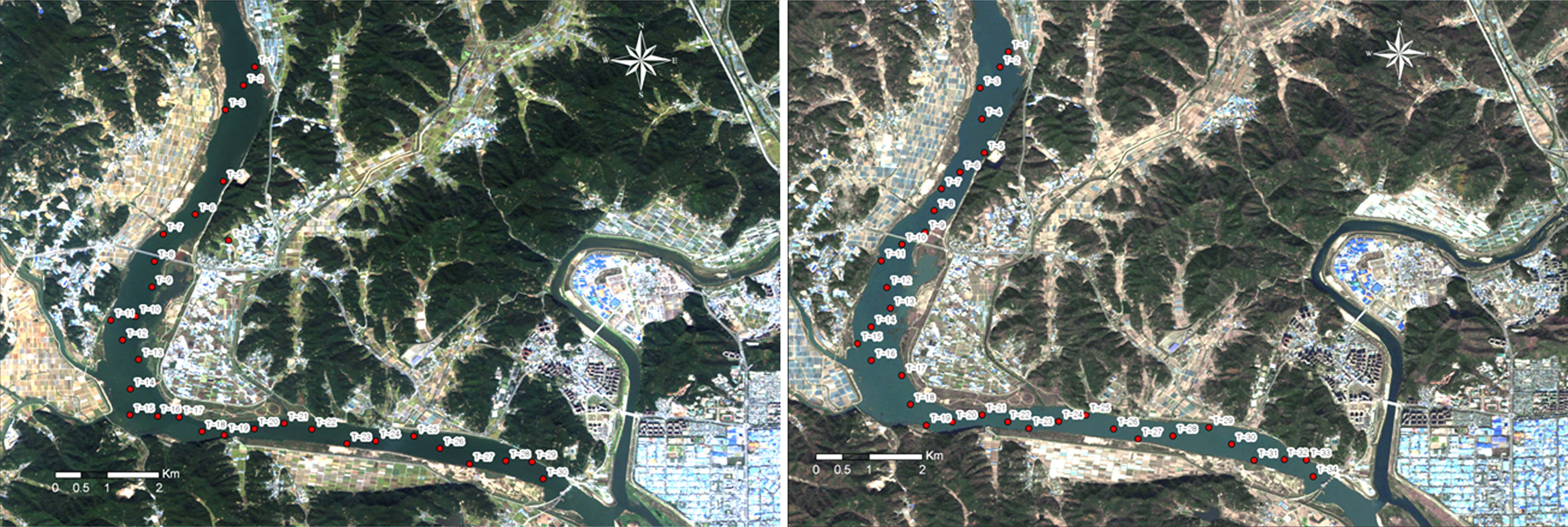 하천은 동일한 담수인 호수에 비해 상대적으로 빠른 흐름 을 가지고 있으므로 시간 변화에 따라 호수와 다른 광학적 특성을 나타낼 것이라 판단된다.
