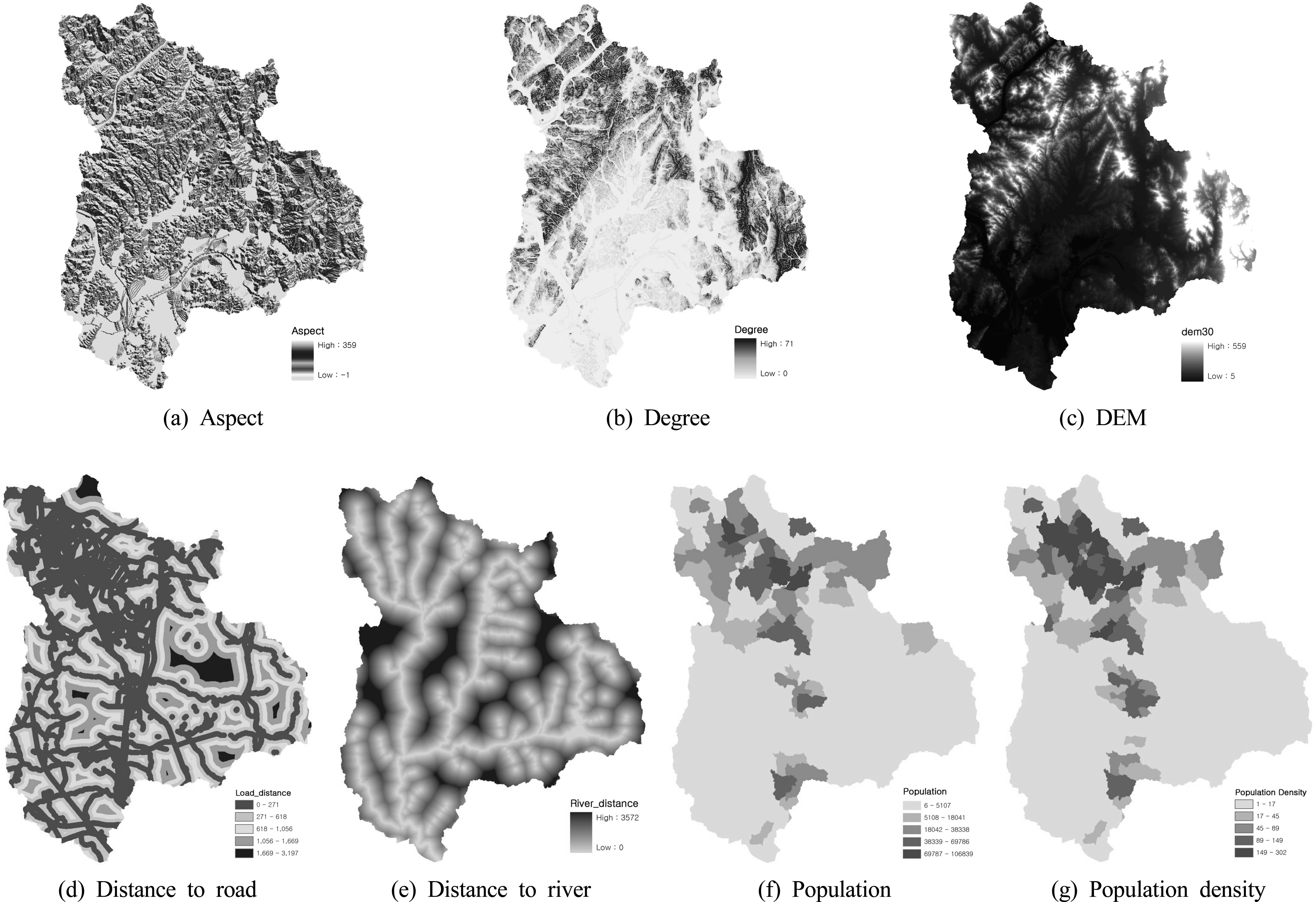 하지만 토지의 변화는 다양한 사회 경제적 요소, 인구분 포, 인구밀도, 토지이용정책 등 여러 요인에 영향을 받을 수 있기 때문에(Oh et al., 2011) 여러 복합적인 영향을 고 려하지 않고 단순한 모델이나 이론을 이용하여 미래 토지 이용 변화를 예측하기 어렵고(Lee et al., 2011), 이에 따라 과거 면적 증감 경향으로만 미래 토지이용 예측을 할 경우 불확실성이 높아질 수 있다.