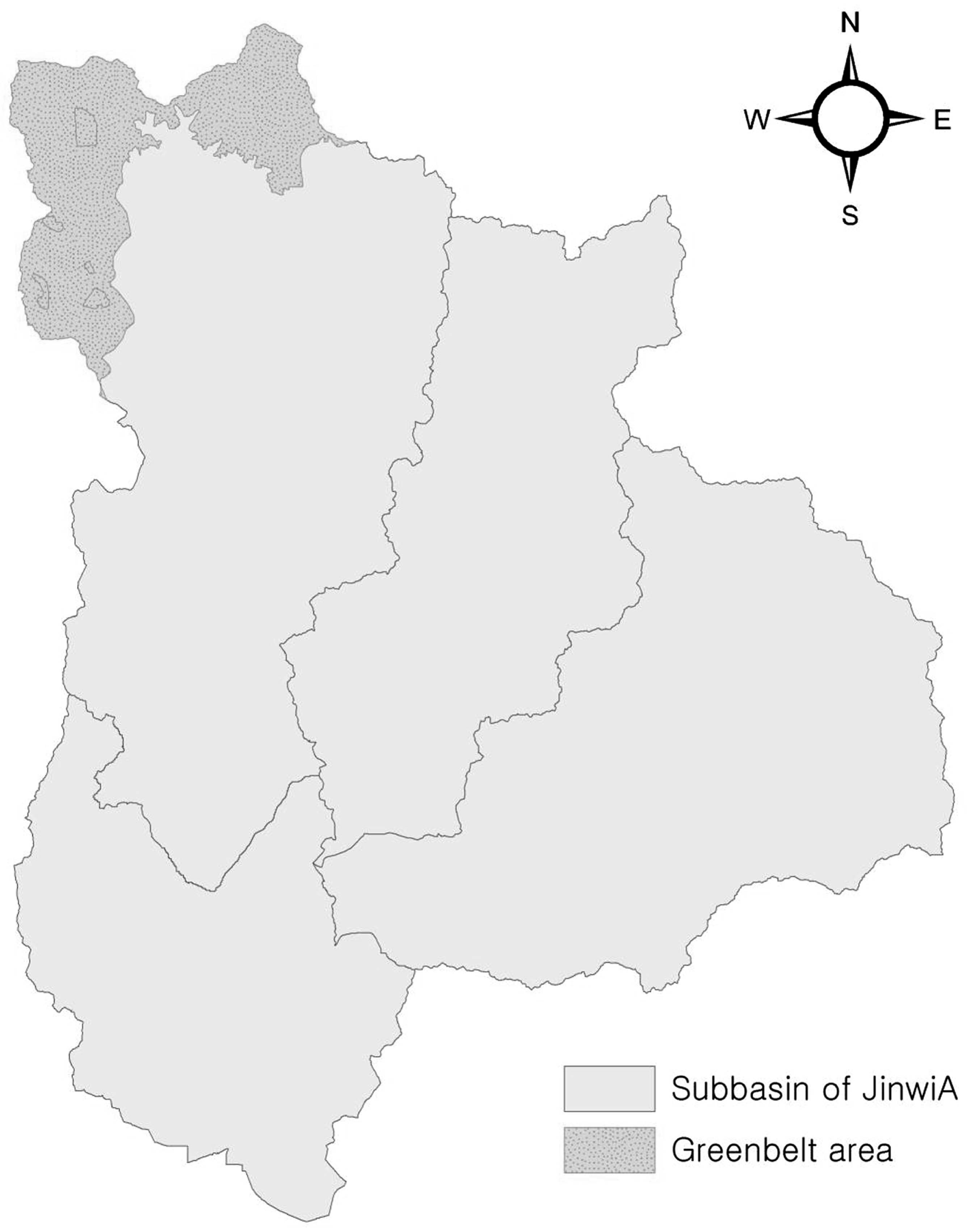 변화가 동시에 존재하는 단위 유역이며(Ryu, Kim et al., 2014) 그린벨트와 같은 특별 토 지이용정책이 고려된 유역이고 가장 최근 오염총량관리제 시행계획이 승인된 단위유역이기 때문에 본 연구의 연구대 상지역으로