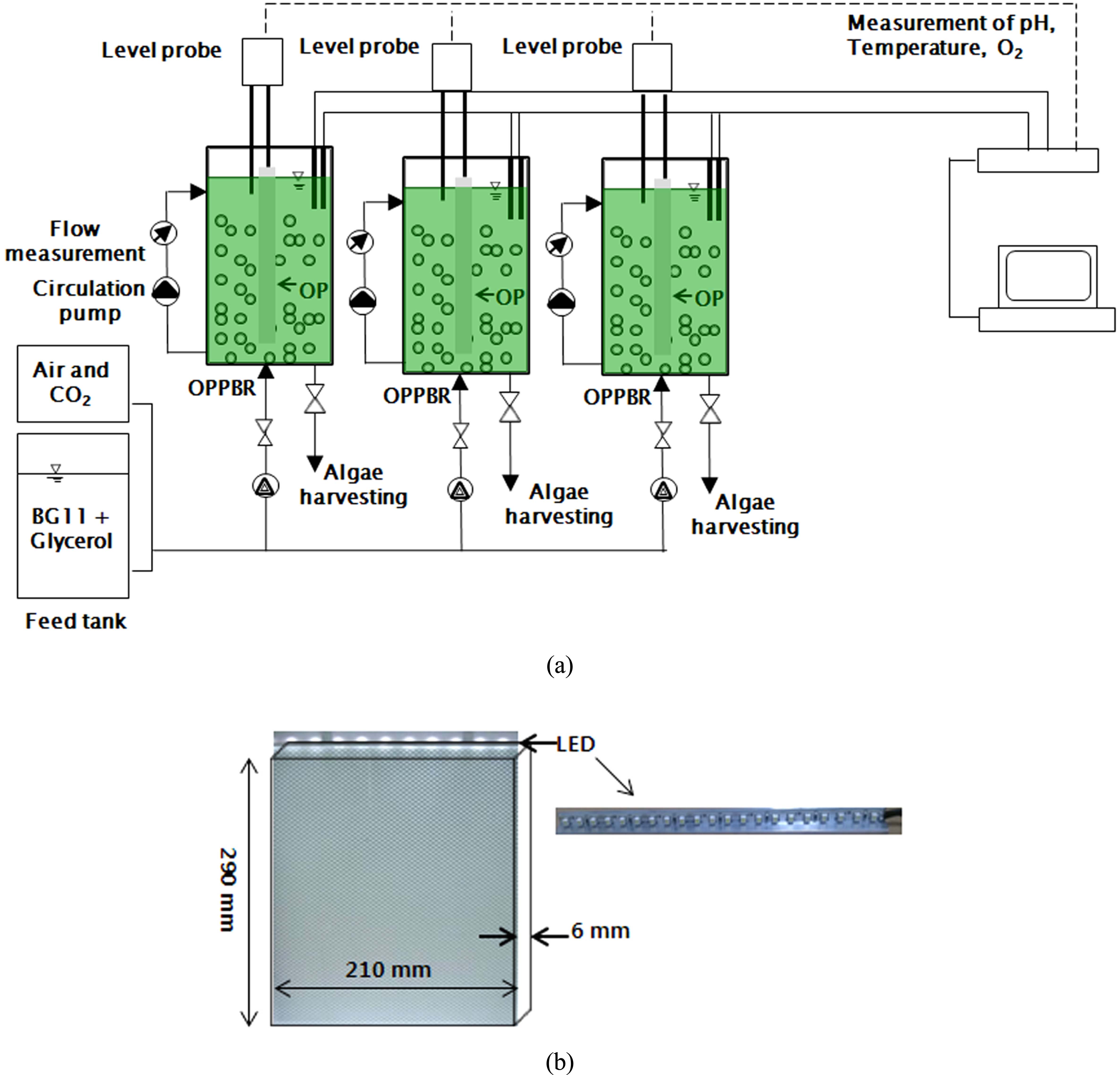 Fig. 1. A scheme of OPPBR (a) and optical panel with LED (b).