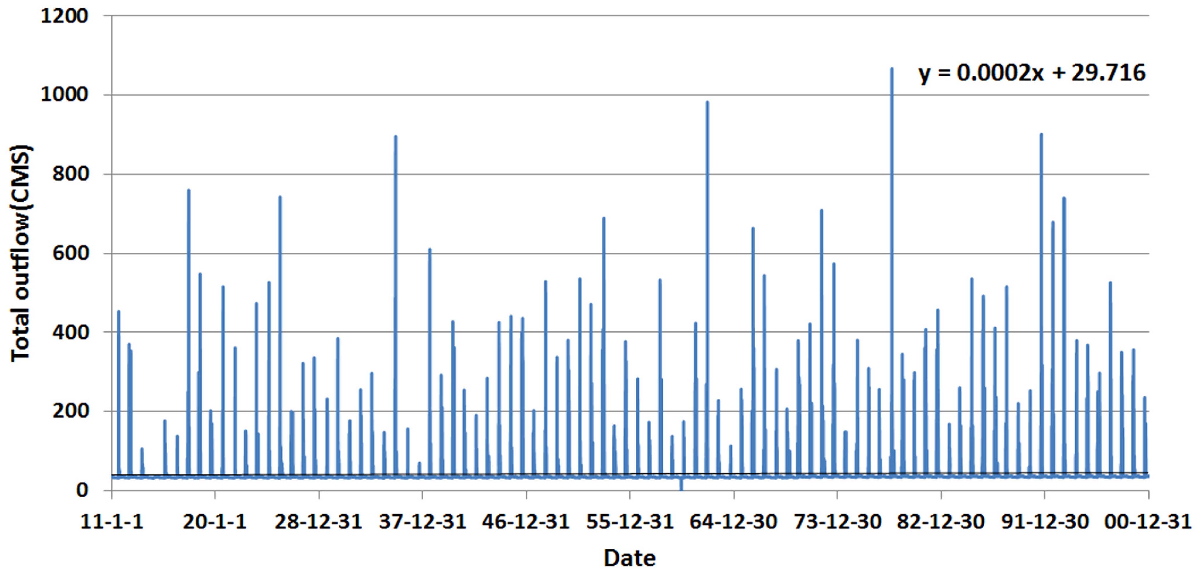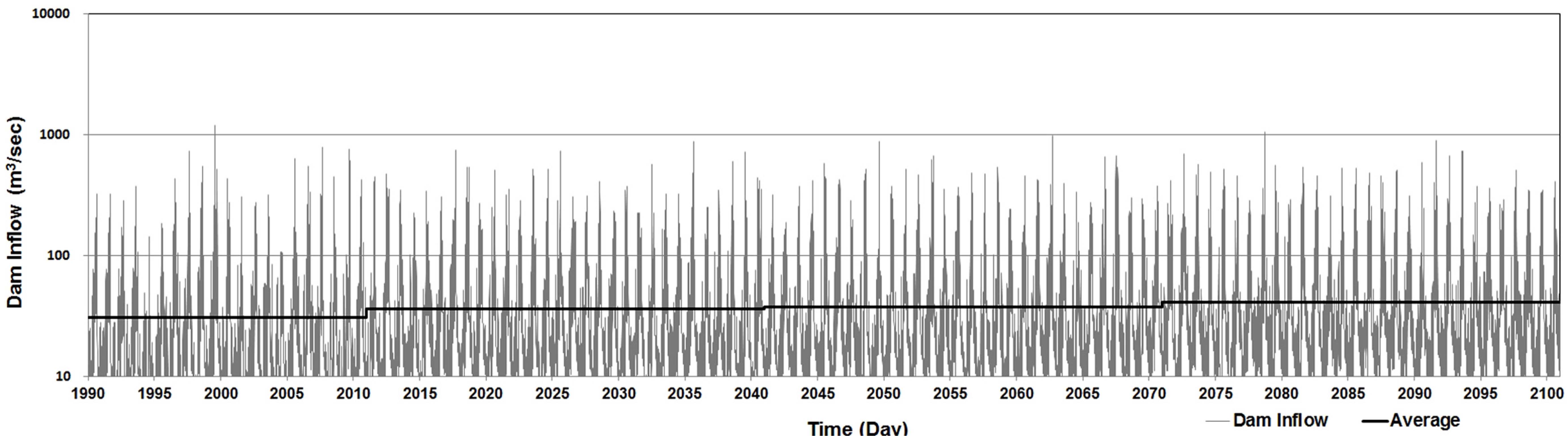 Fig. 12. Simulated daily dam outflow under A1B scenario using HEC-ResSim.
