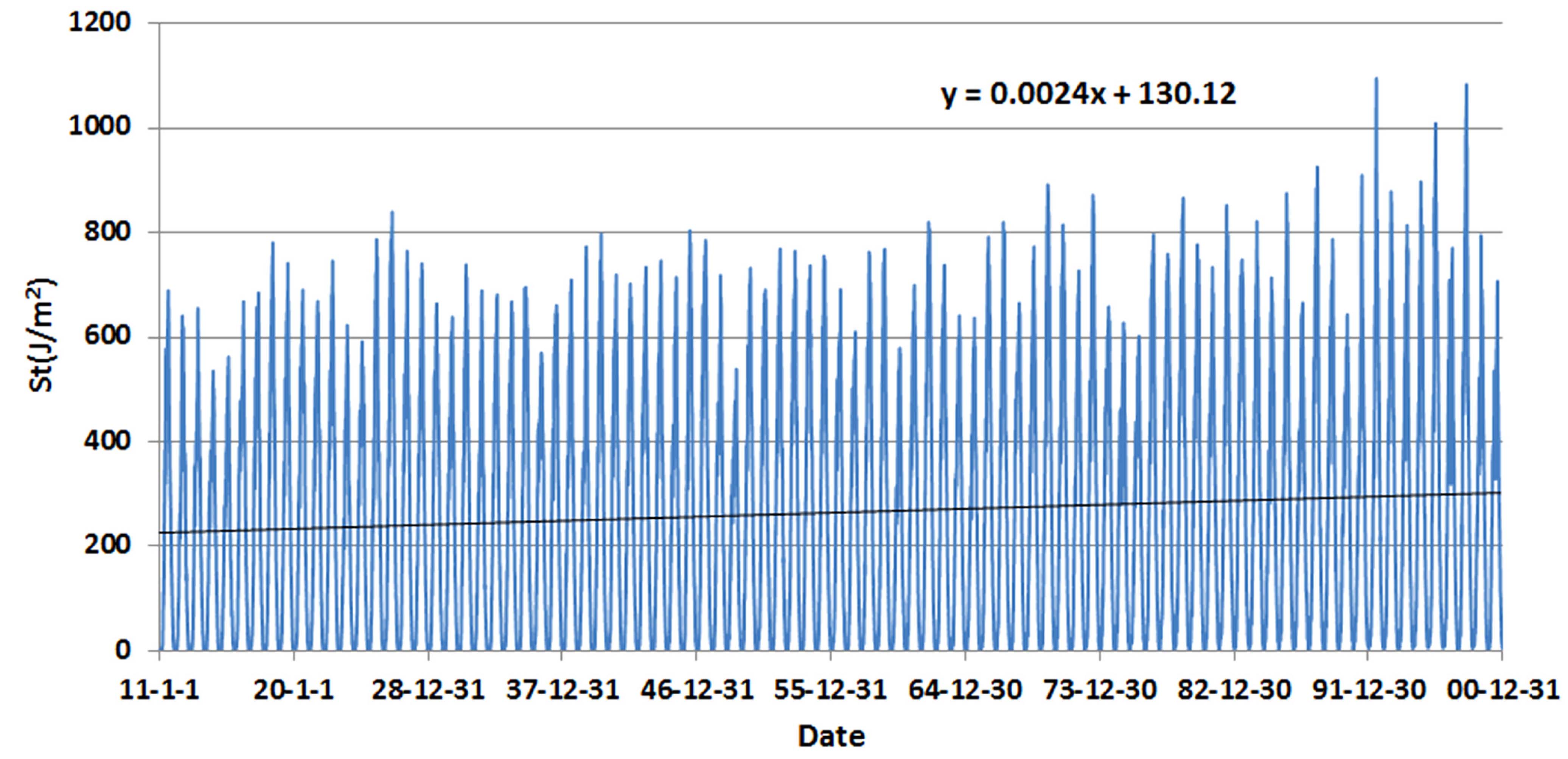 255.4 J/m2 ์ผ๋ก ์ฝ 8.3% ์ฆ๊ฐํ๋ ๊ฒ์ผ๋ก ๋ํ๋ฌ์ผ๋ฉฐ, ST ๋ ์ ์์ง ์ ํ์ธต์์จ์ด ์ฆ๊ฐํจ์ ๋ฐ๋ผ ๋ฏธ๋๋ก ๊ฐ์๋ก ์ฆ๊ฐํ๋ ๊ฒฝ ํฅ์ ๋ณด์๋ค. 2011๋