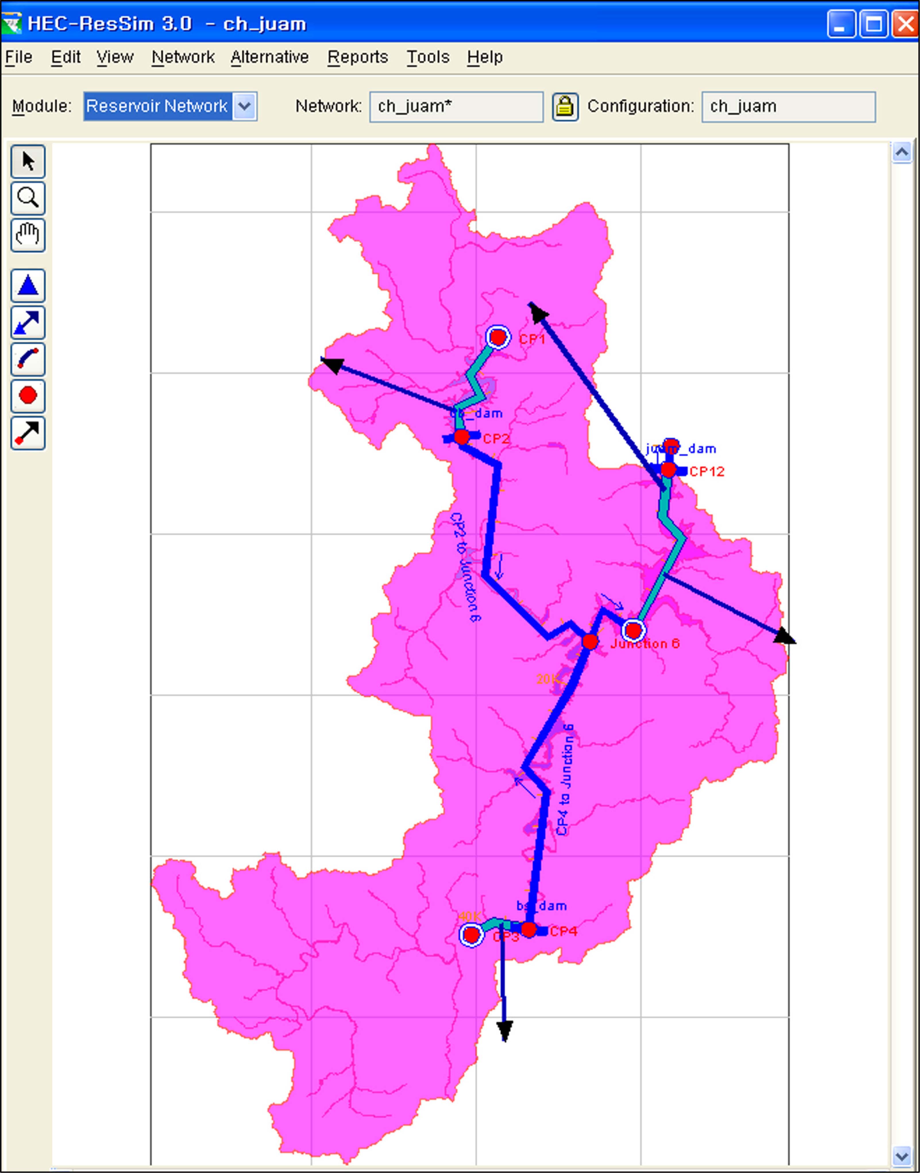 ์ ๋ง์ ์ํํ๋ค. ์ ์์ง ์ด์ ๋ชจ๋์์๋ SWAT์ ์ ์ถ๋์ ๋ฌผ์์ง ๋ฐฉ์ ์์ ๊ธฐ๋ฐ์ ๋ ์ ์์ง ์ด์๋ชจ๋ธ์ธ HEC-ResSim์ ์
