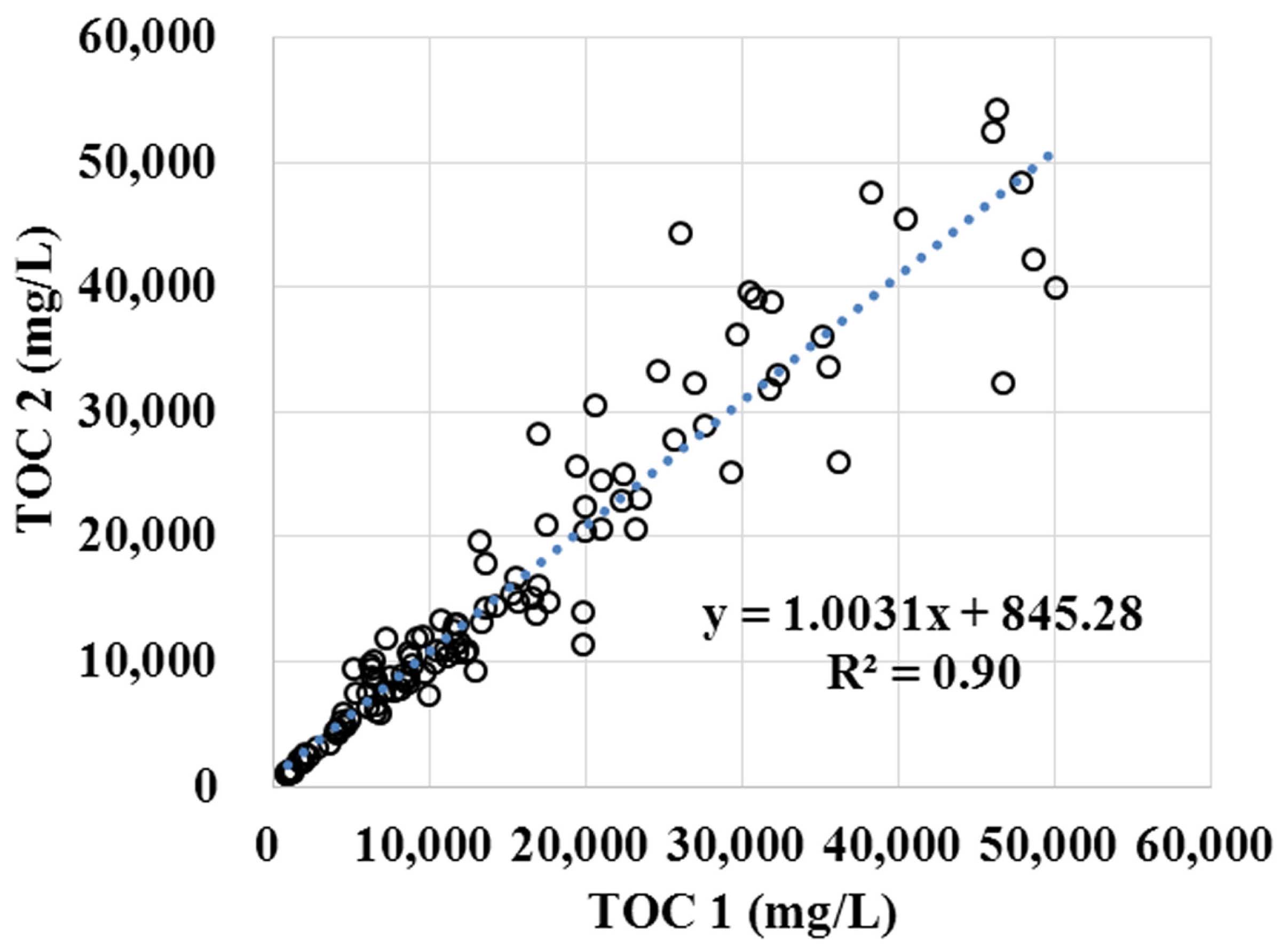 Fig. 1. Correlation of TOC 1 and TOC 2.