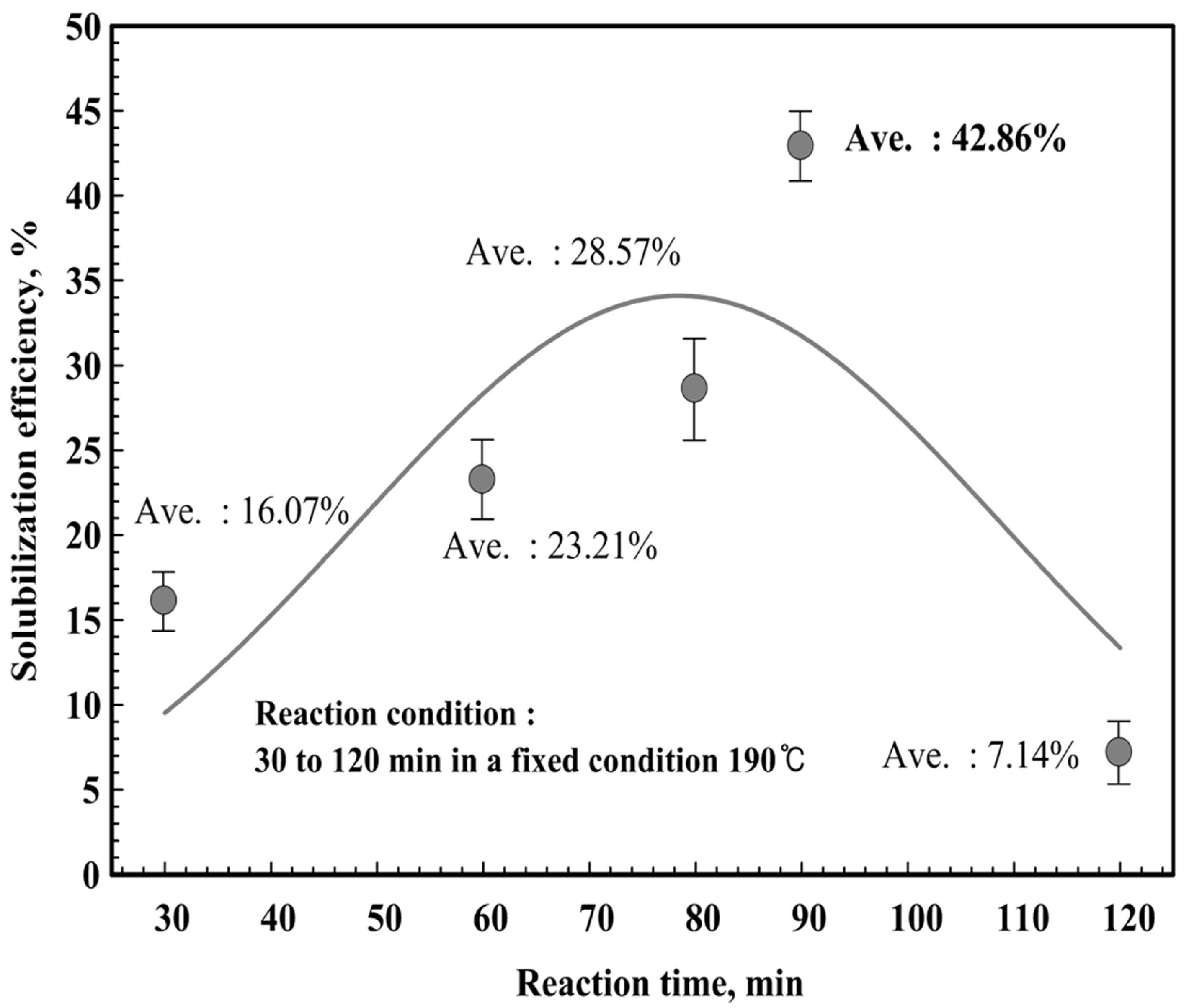 Fig. 6. Results of solubilization rate with reaction time in lab. scale reactor.