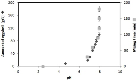 3.1.1. Change of pH by dosage of eggshells and mixing time
