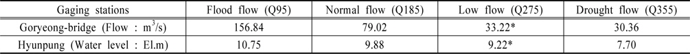 Flow Regime of Goryeong-bridge and Hyunpung Gaging Stations (2012)