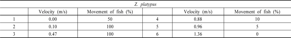 Migrating Fish (Zacco platypus) in The Experimental Flume, Proceedings of Korean Society