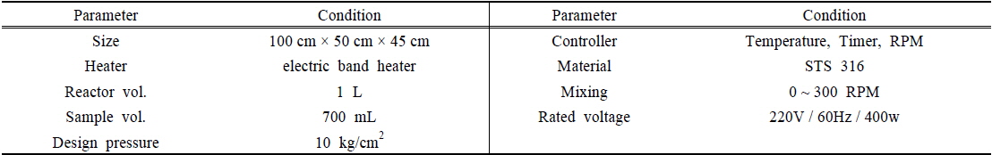 다른 온도조건에 비해 가장 높은 것으로 나타났다. 열가용화 장치의 온도가 증가할수록 열가수분해 효율도 점차 증가하는 경향을 보였으며, 특히 반응시간