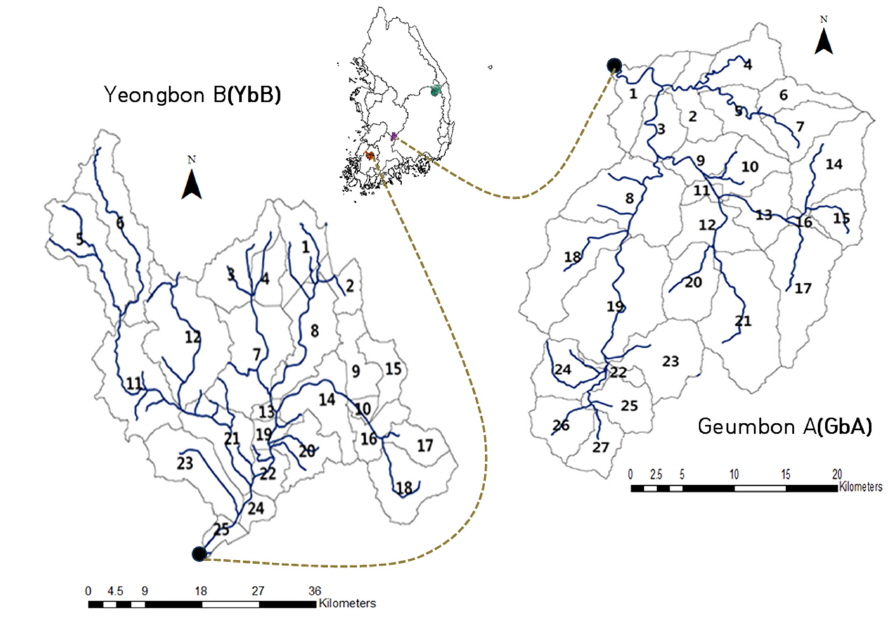 ์๋์ ์ผ๋ก ์ํฅ์ด ์์ ๊ธ๊ฐ ์ ์ญ์ Geumbon A(GbA) ์์ง์ค์ผ์ด๋๊ด๋ฆฌ์ ์ญ์ ๋์์ ์ญ์ผ๋ก ์ ์ ํ์๋ค.