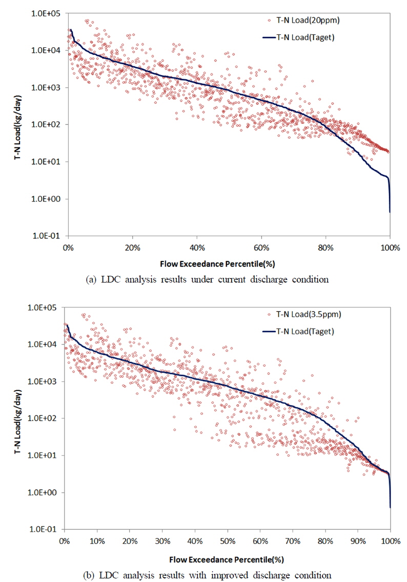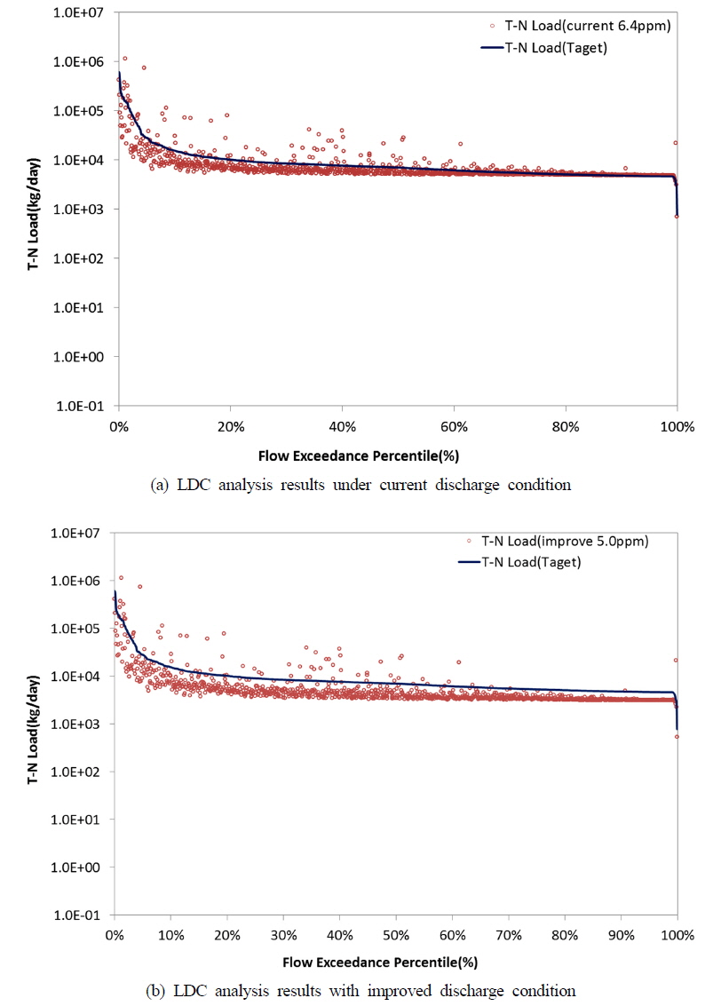YbB ๋ฐ GbA ์ ์ญ์ ํ์ฒ T-N ๊ธฐ์ค์์ง์ ๊ฐ๊ฐ 7.4 mg/L, 3.5 mg/L๋ก ์ค์ ํ์๋ค. ๊ทธ๋ฆฌ๊ณ ํ์๋(0~10%), ํ์๋(10~40%),