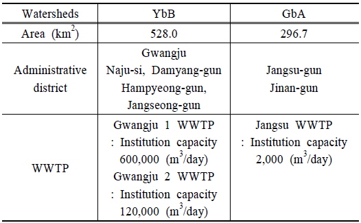 ๋ณธ ์ฐ๊ตฌ์ ์ ์ญ ํน์ฑ์ Table 1๊ณผ ๊ฐ์ด YbB ์ ์ญ์ ๊ด์ฃผ๊ด์ญ์๋ฅผ ๋น๋กฏํ์ฌ ์ ๋ผ๋จ๋ 4๊ฐ ์ง์์ฒด๋ฅผ ํฌํจํ๊ณ ์๊ณ , GbA ์ ์ญ์ ์ฅ์๊ตฐ๊ณผ ์ง์๊ตฐ์ด ํฌํจ๋์ด ์๋ค.