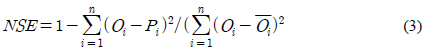 여기서 Pi는 SWAT모형에서 예측된 각 모의값이고, Oi는실측값이며, ../../Resources/kswe/31-3/images/SJBJB8_2015_v31n3_241_e003.jpg는 모든 실측값의 평균이다. 또한 n은 데이터의 개수이다.