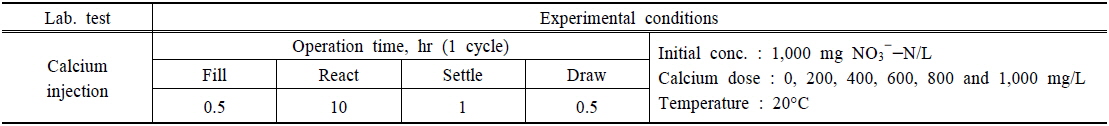 SBR)를 적용하였으며 칼슘이온의 제어에 따른 질산성 질소의 효율적인 처리에 목적을 두었다.