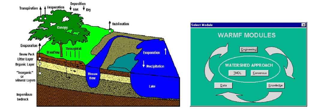 WARMF 모델은 지역개발이 수문과 수질에 미치는 영향분석, 하천에 허용 가능한 오염부하량 산정, 효과적인 비점오염원 삭감 방법 검토, 발전소가 수질에