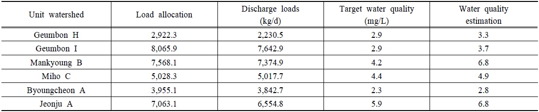 이는 할당부하량이 초과하여도 목표수질을 만족하거나 할당부하량을 만족하여도 목표수질이 초과하는 현상이 발생한 사례가 존재하는 것이 이를 반증하고 있다.