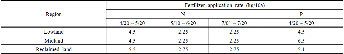 Regional and seasonal fertilizer application rates for paddy fields in the Mankyung