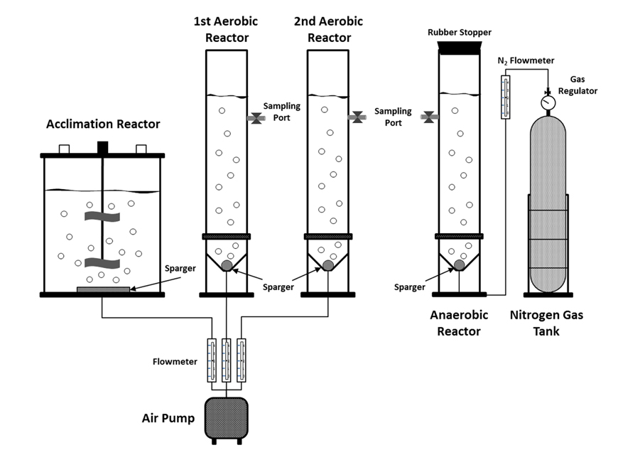 (Fig. 1). The sludge cultivated in the 1st aerobic reactor was then fed, resuspended in the same synthetic wastewater, and transferred