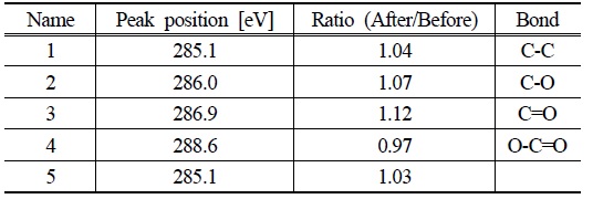 C 1s core level XPS spectra of peak ratio before and after experiment