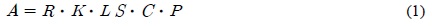 여기서, A : 연평간 토양 유실 가능 추정치(Mg/ha/yr)
