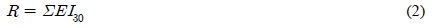 여기서, EI30 : 30분 최대 강우강도(mm/hr)