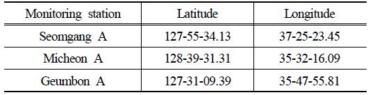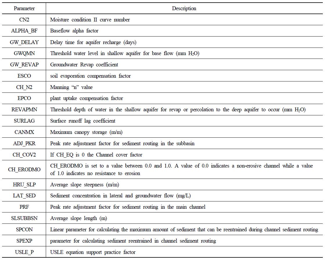 본 연구에서는 유출량과 유사량에 대한 보정을 수행하였다. 보정에는 물환경정보시스템에서 제공하는 2009년부터 2012년까지의 총량 8일 유량/수질자료를
