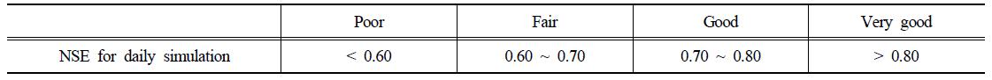 바와 같이 SWAT 모형이 각 유역의 유출량과 유사량을 정확히 평가할 수 있을 것으로 판단되었으며 이를 1일 실측 자료로 가정하여 활용하였다.