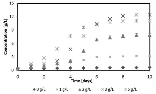 period of 15 days was not chosen randomly; the highest biomass concentration is reached