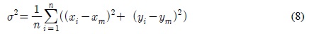 여기서, xi, yi는 각 부자의 좌표, xm, ym은 부자 집단의 중심점 좌표, Δt는 경과시간이다.