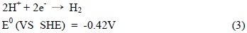 식 (1)과 (2)의 전체 반응전위는 0.04 V로 추가적인 에너지 공급을 하지 않고 자발적으로 반응이 일어날 수 있으며, 식 (1)과 (3)의 전체