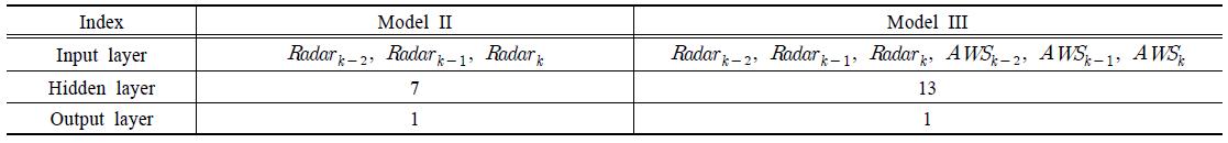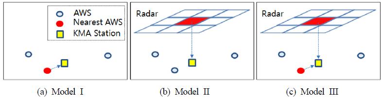 II), 레이더 강우와 AWS를 동시에 활용하는 방법(Model III)를 비교‧평가하고자 하였으며, 각 모델들의 평가 방법론을 도식적으로 표현하면