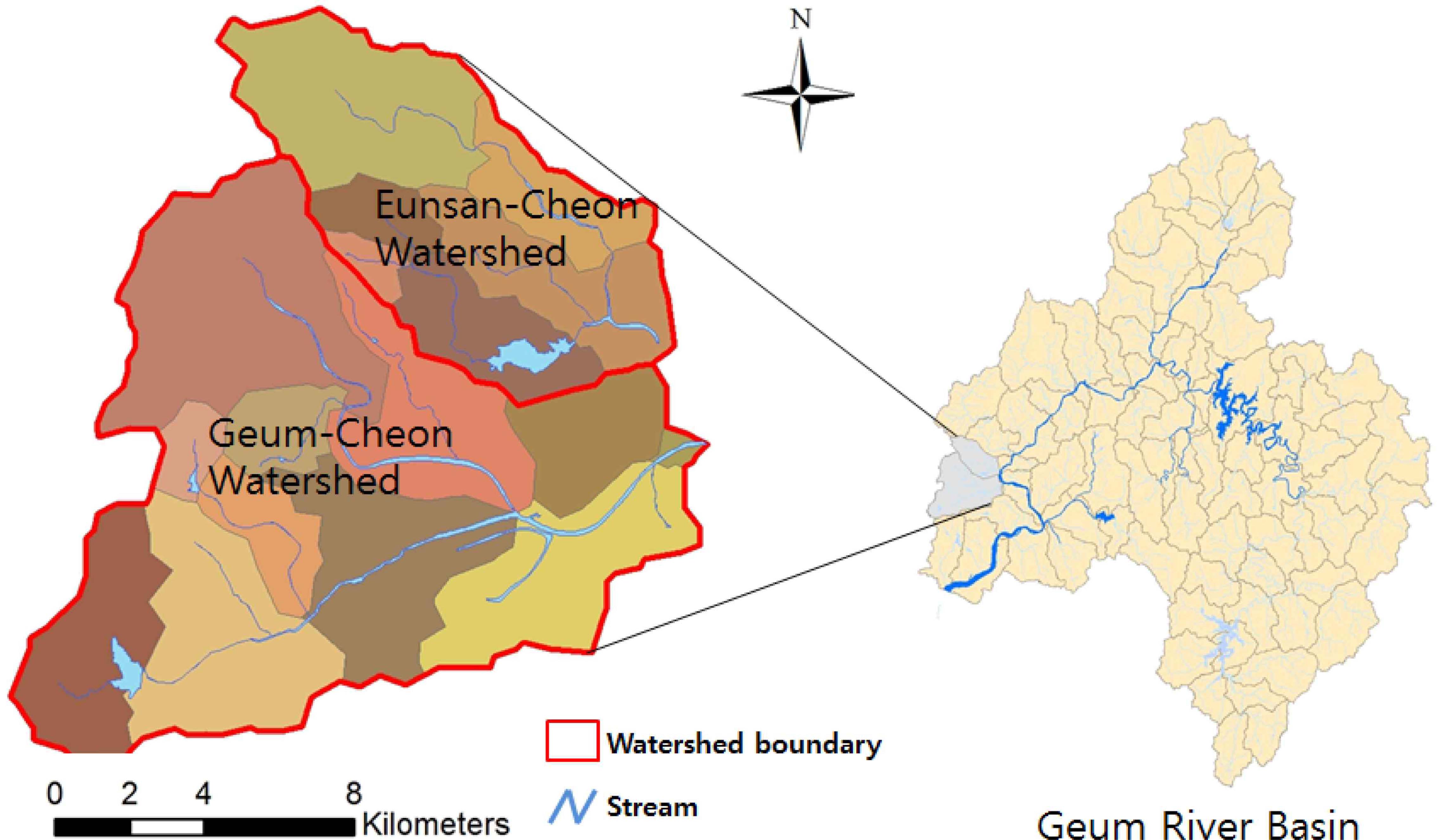 산림 지역은 전체 유역 면적의 49.1 %이다(Table 1).