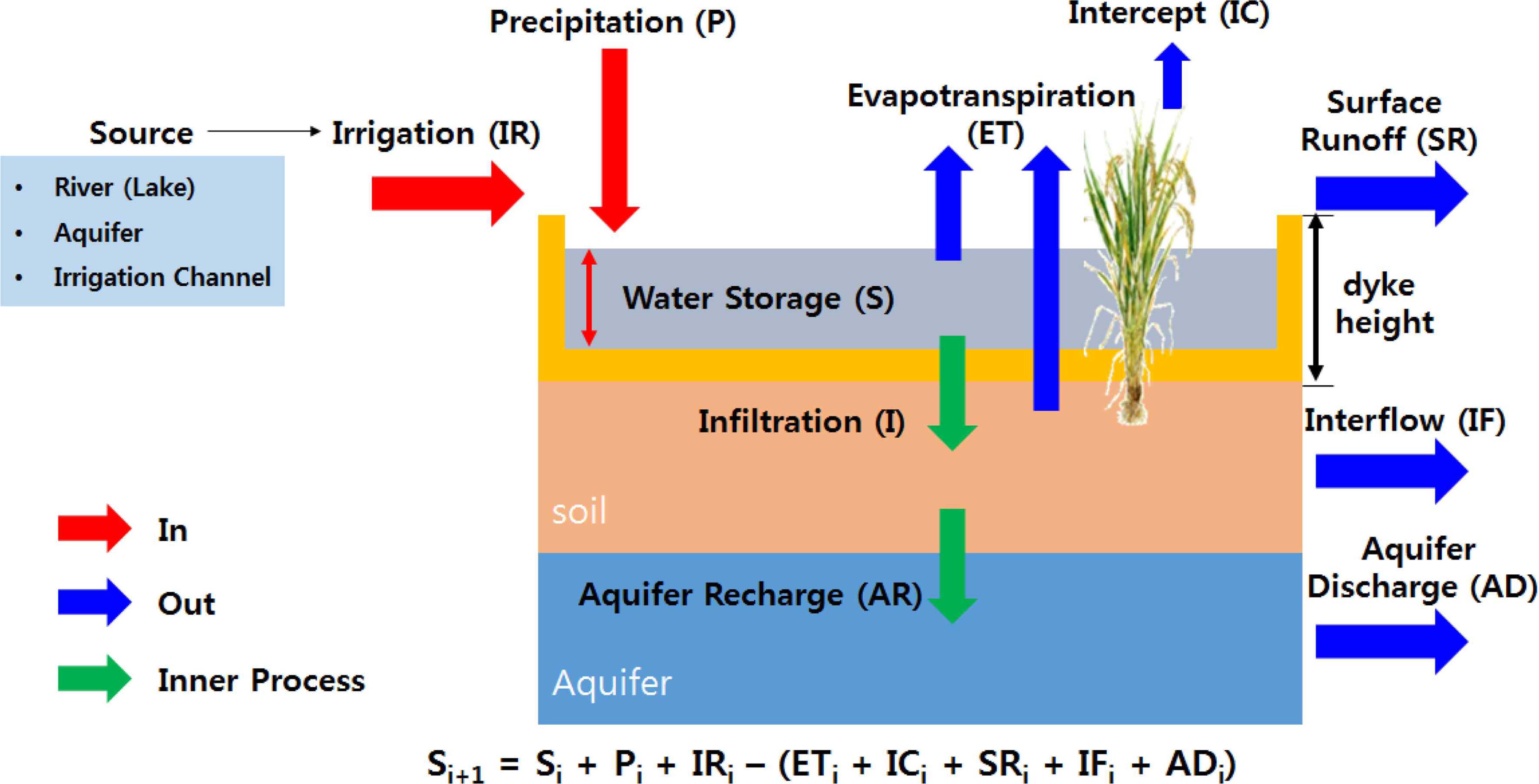 추가해야 하는 한계가 있었다(Jeon et al., 2007; Sakaguchi et al., 2014). 따라서 다양한 토지이용이 집약적 으로 분포하는 국내 유역환경특성과 여름철 강우가 집중적 으로 발생하는 기상조건 그리고 유역의 수문과정에서 논이