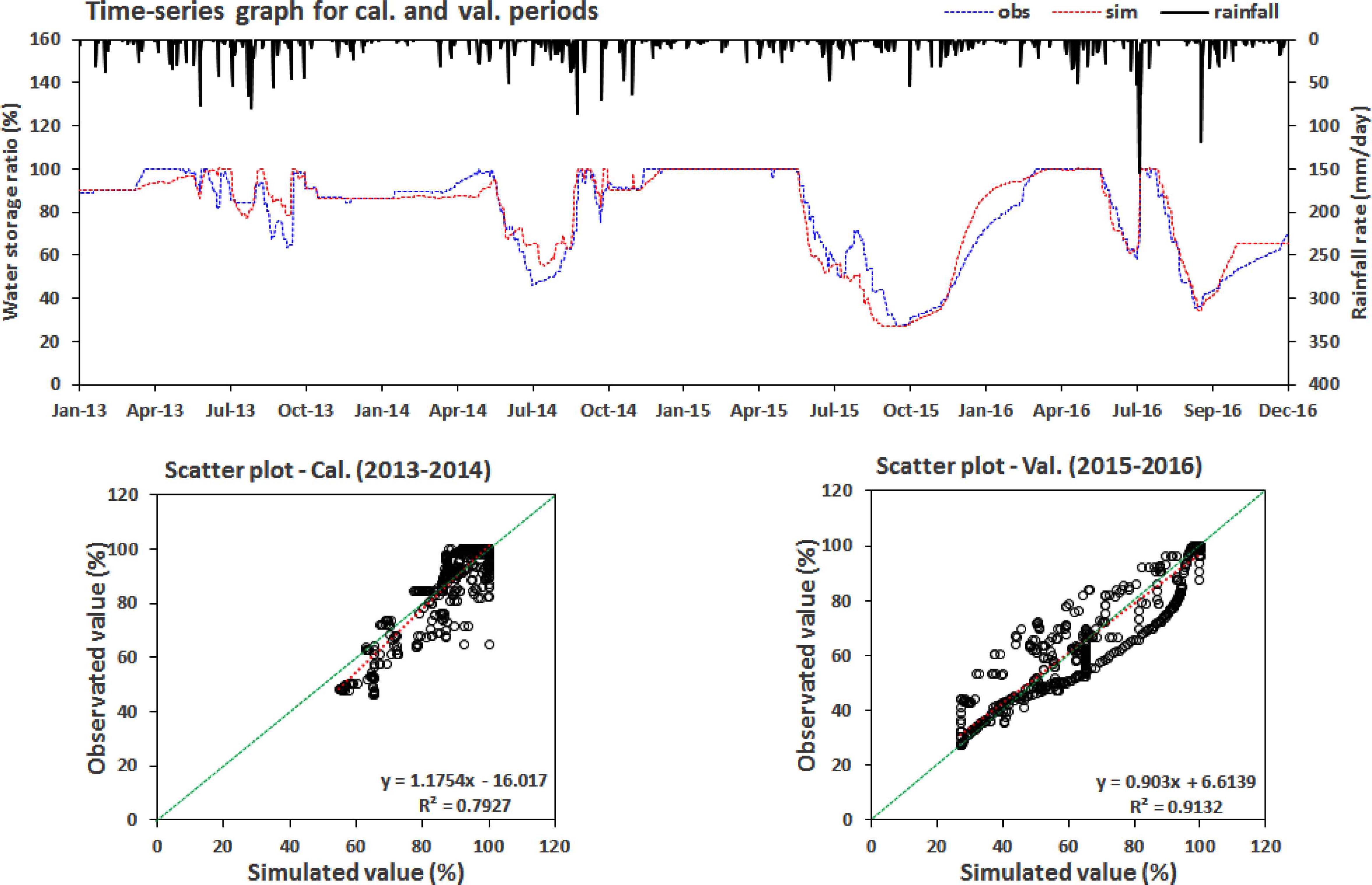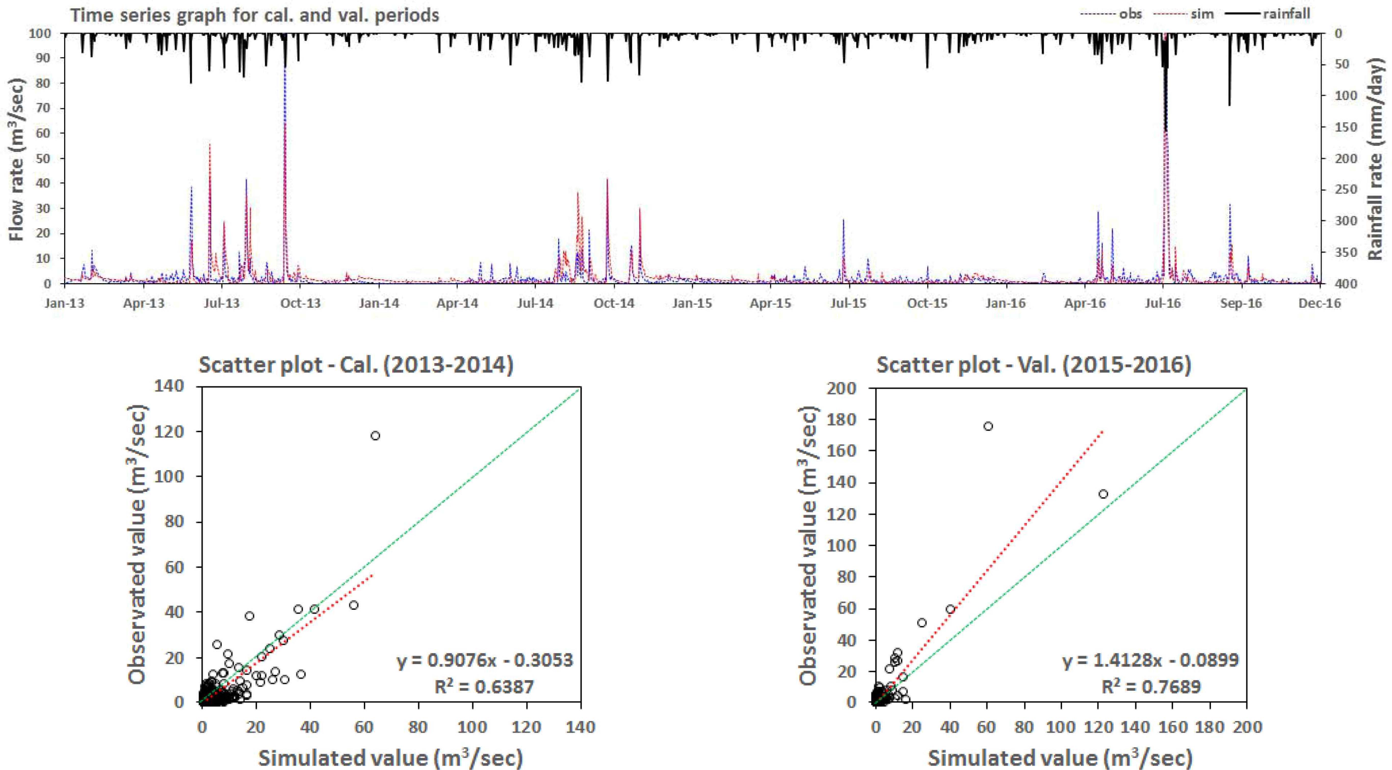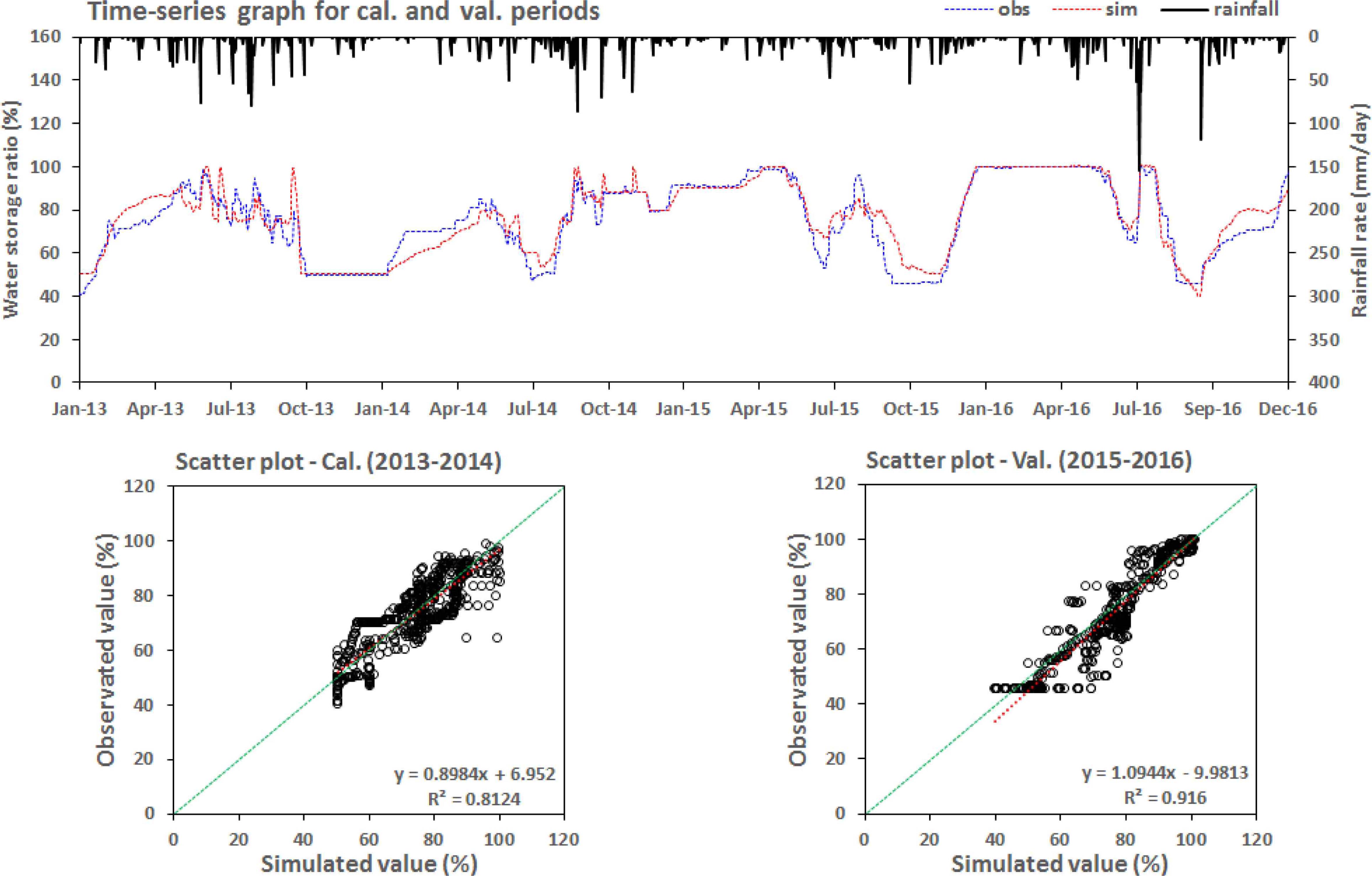 주요 관개용수 공급원인 유역 상류에 위치한 저수지 지점에서 모델 보정을 수행함으로써 논 중심 농업 유역의 중요한 수문기작인 관개량 모의 결과에 신뢰도를