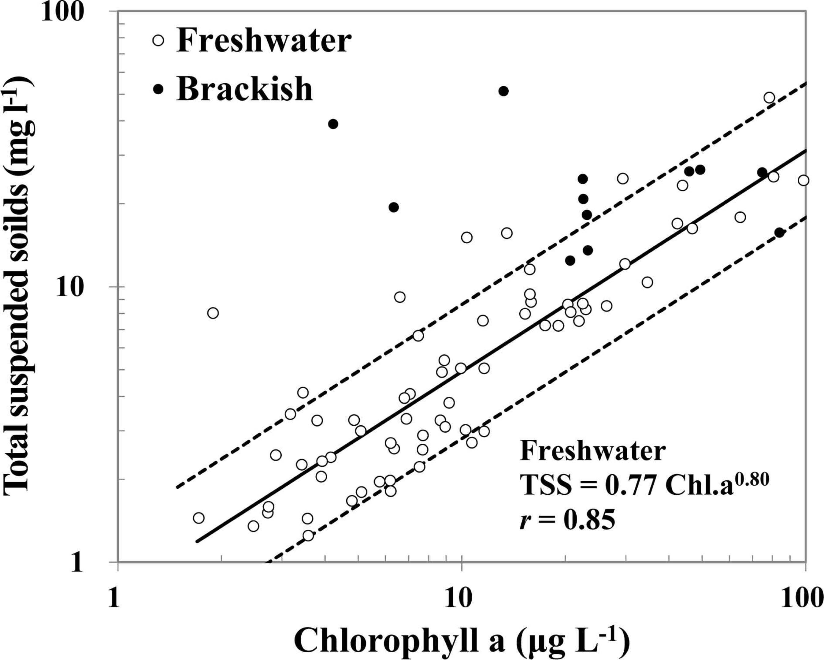 Fig. 9. Relationship between Chlorophyllαand total suspended solids.