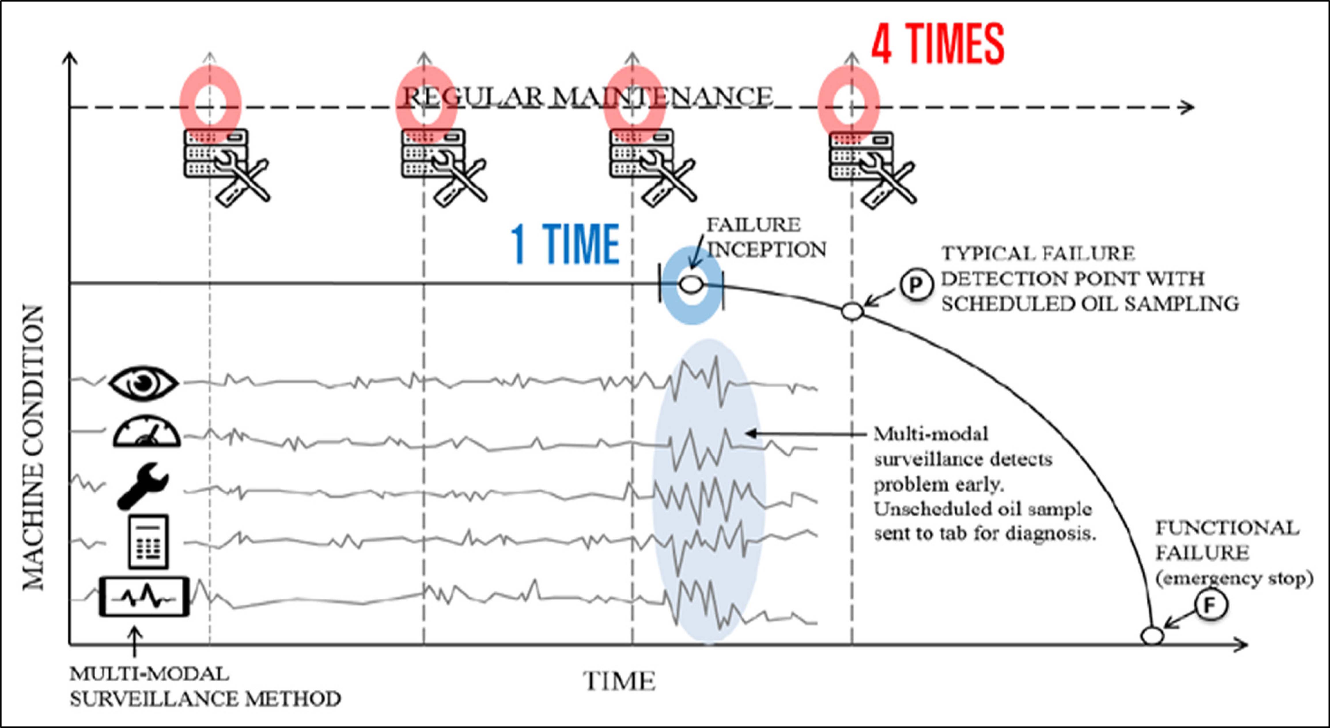 Mamais et al. (2014)은 기존 하수처리시설에서 운영되고 있는 DO sensor를 활용하여 합리적인 DO 농도를 설정하였 고 이를 통해 전력 사용량을 절감하였으며, Yoon et al. (2018)은 빅데이터와 추가적으로 IoT 플랫폼을 활용하여 폭 기 제어를 통한 에너지·운영비용 절감 효과를 달성하였다. Zadorojniy et al. (2017)는 폭기 제어와 함께 하수처리시설 내부의 유량 펌프, 슬러지 펌프의 빅데이터와 IoT 플랫폼을 사용하여 에너지·운영비용을 절감하였다. 펌프의 경우 에 너지 소비 비율이 폭기 다음으로 높은 비율을 차지하는 요소 이며, 노후화된 펌프가 운영될 때는 보통의 펌프보다 에너지 소비량이 높아질 수 있다. 연구 사례를 살펴보면 펌프 등의 하수처리시설 구성 요소들이 운영·유지비용에 높은 비율을 차지하고 있음을 확인할 수 있었다(Panepinto et al., 2016). 이에 따라 Chalabi and CH2M Beca. (2018)는 기존의 운 영·유지 방법을 개선하여 빅데이터, IoT 플랫폼을 활용한 예측 운영·유지 방법을 제시하였다(Fig. 5). 제시된 방법을 살펴보면 기존의 유지보수는 일정한 기간을 두고 점검을 통 하여 문제가 확인될 때 진행하는데, 이러한 방법은 보수의 비용이 높으며 보수 기간 동안 처리 공정 일부를 중단해야 하는 문제가 발생한다. 그러나 예측 운영·유지 방법은 정확 한 센서를 통해 구축된 빅데이터를 활용하여 유지보수의 시 점을 예측할 수 있고 이에 따라 보수 비용이 낮아지는 것은 물론 빠른 대처가 가능하다.
