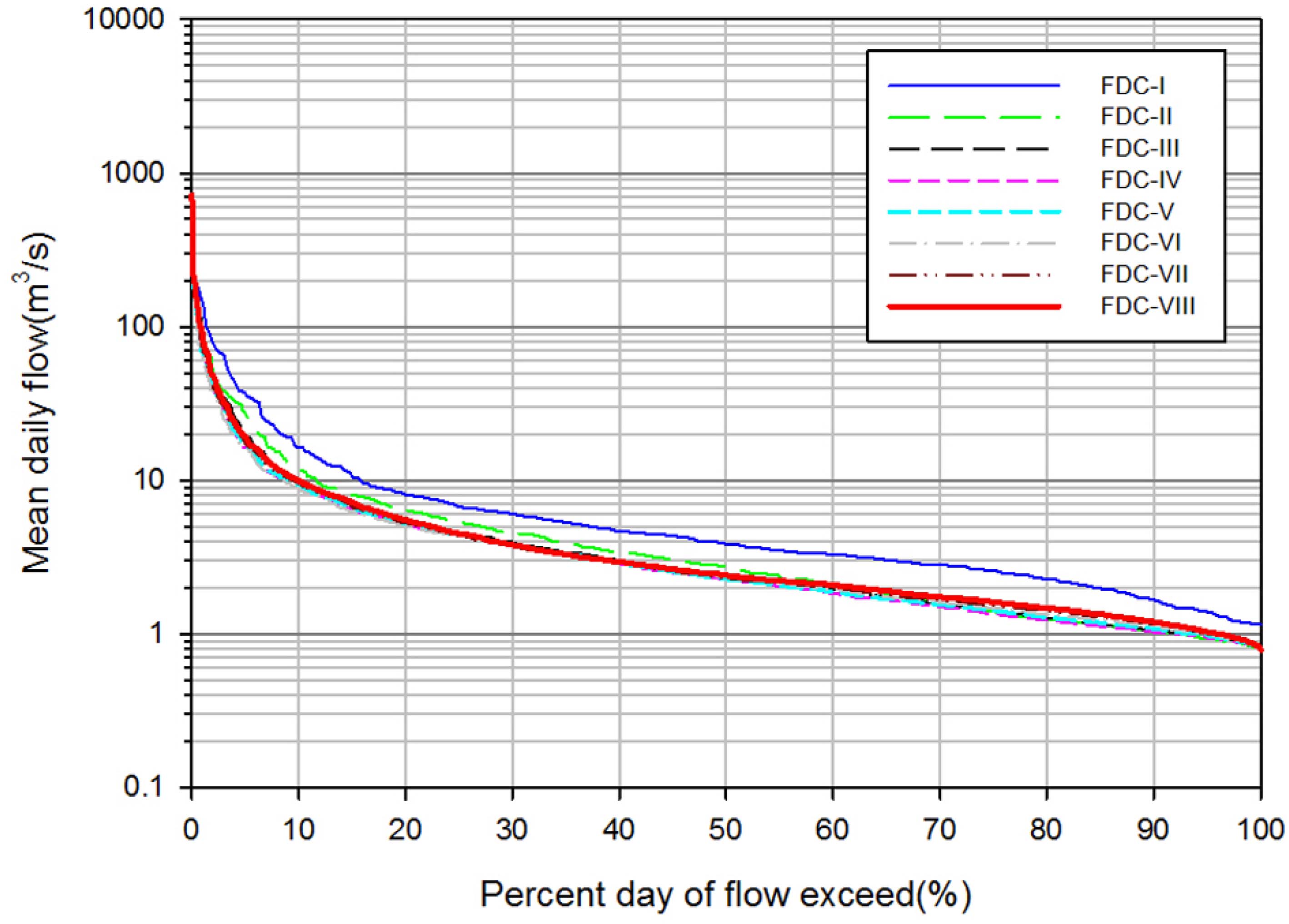 Kim (2008)은 최소 15년 이상의 기간이 필요하다라는 연구결 과가 있으나, 대표유량지속곡선 작성을 위한 유량자료 기간 등에 대한 보다 다양한 연구들이 필요할