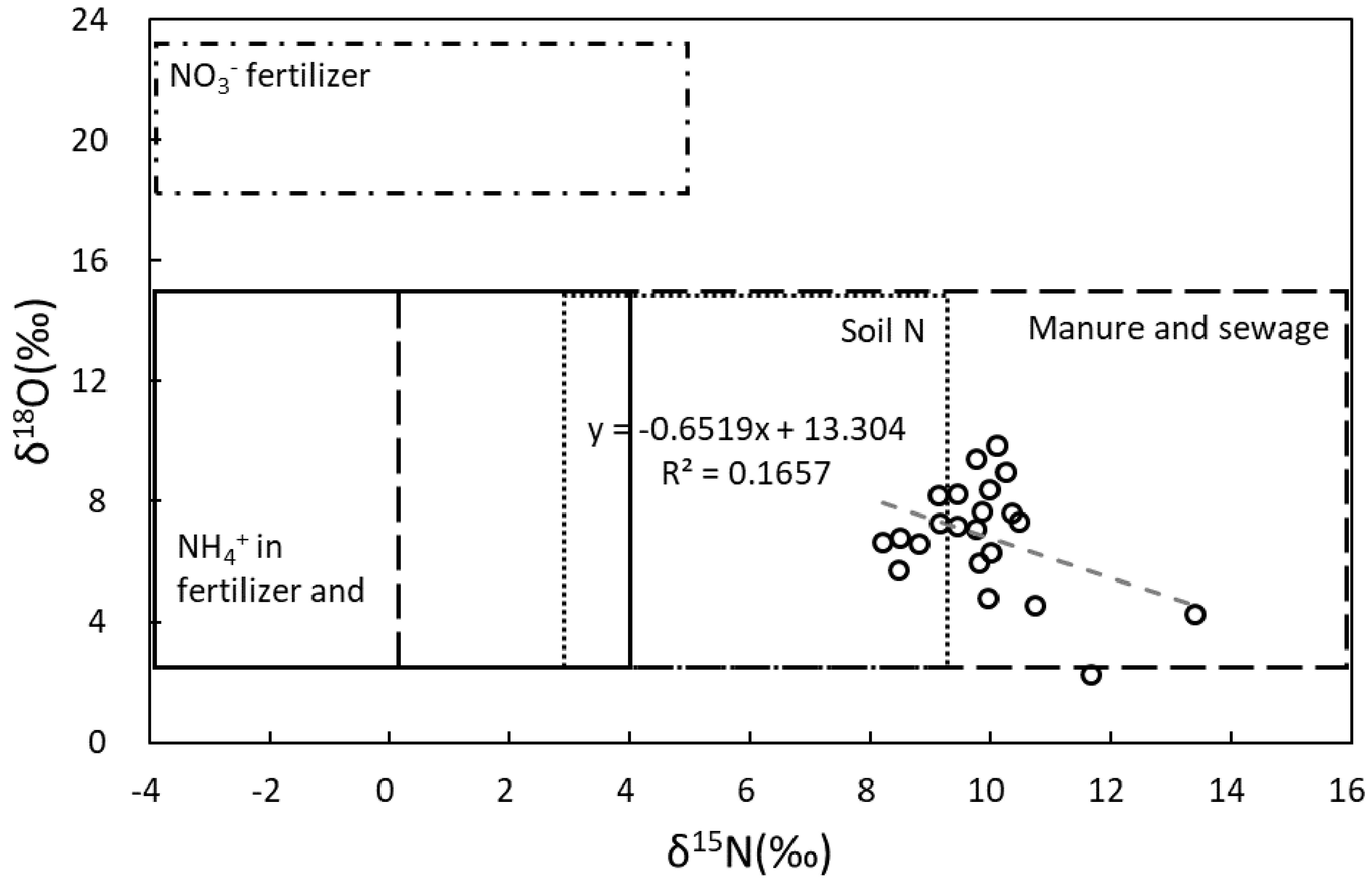 Fig. 3. Nitrate isotopic signatures in the Yeongsan River together with typical nitrate end-member (Kendall et al., 2007).