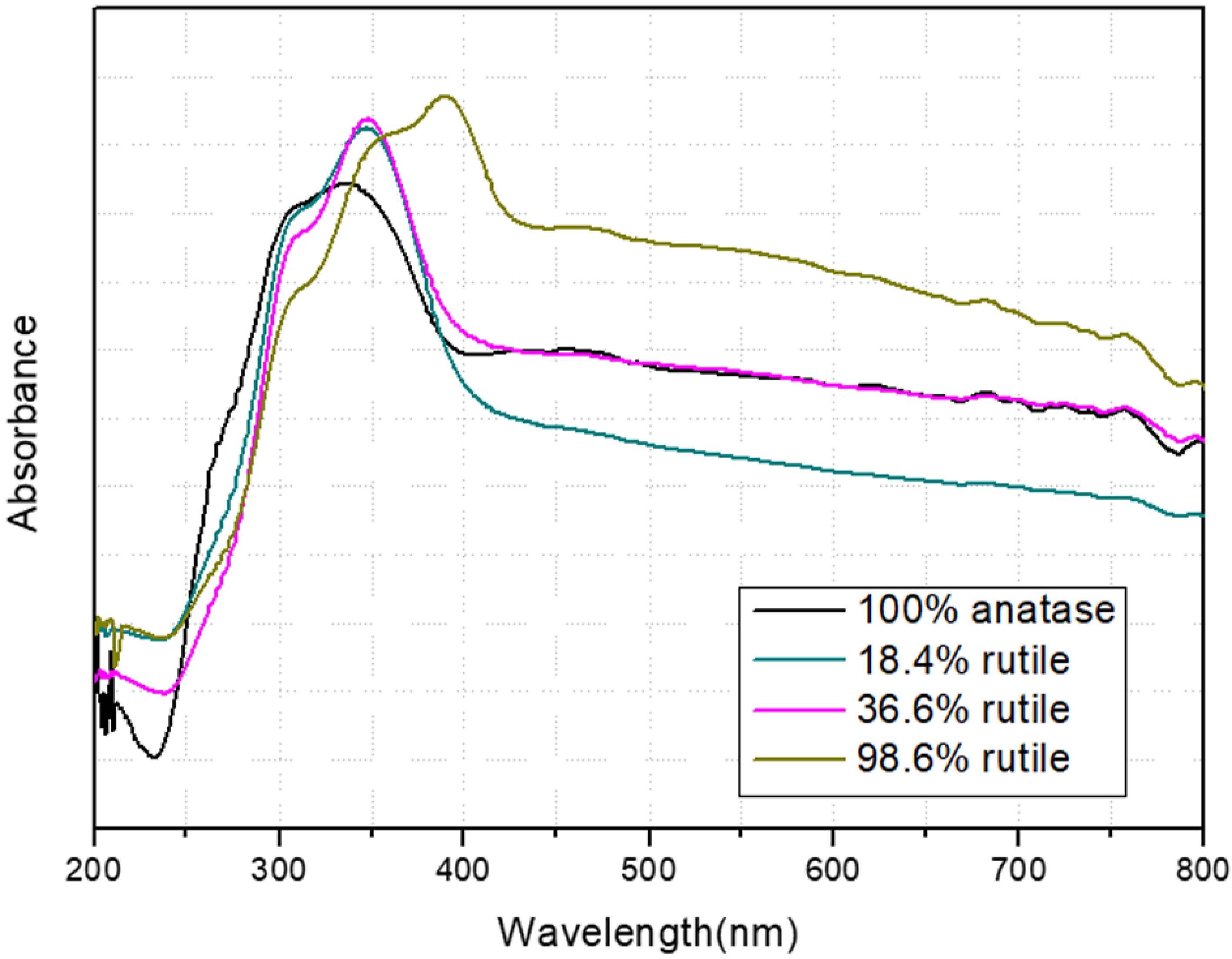 Fig. 5. UV-Vis absorbance according to anatase and rutile ratio of TiO2nanotube.