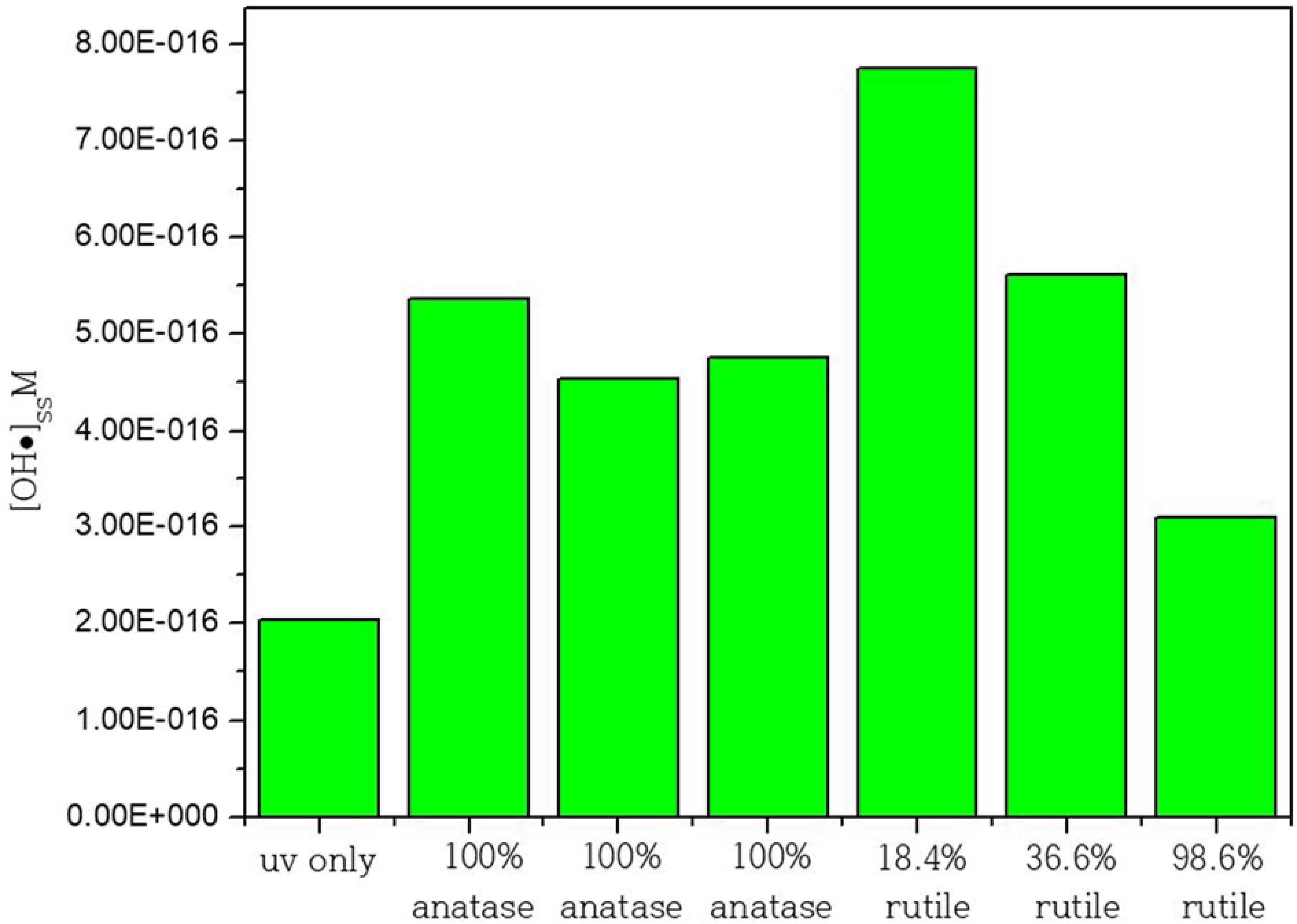 Fig. 7. Comparison of OH radical generation depending on anatase to rutile ratio
