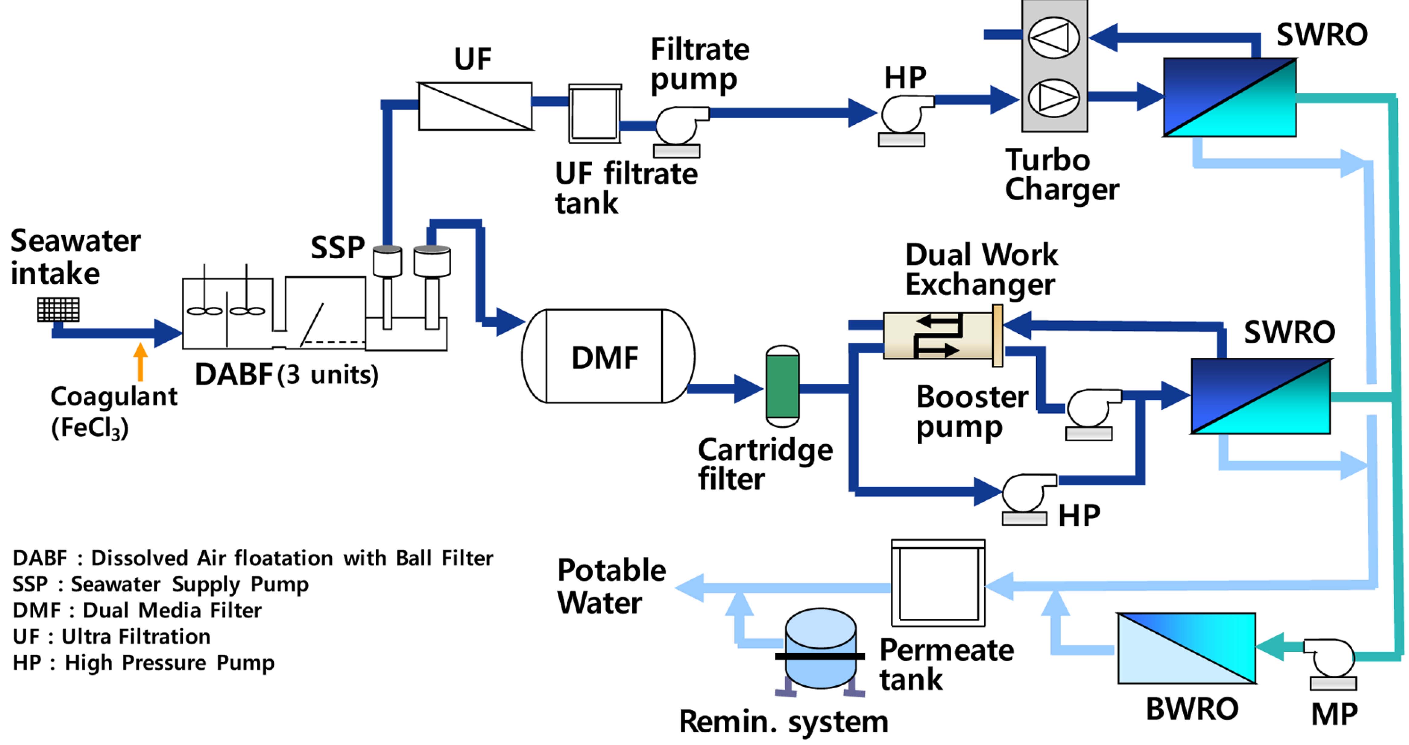 Fig. 1. Gijang SWRO Process Diagram applied with DABF.