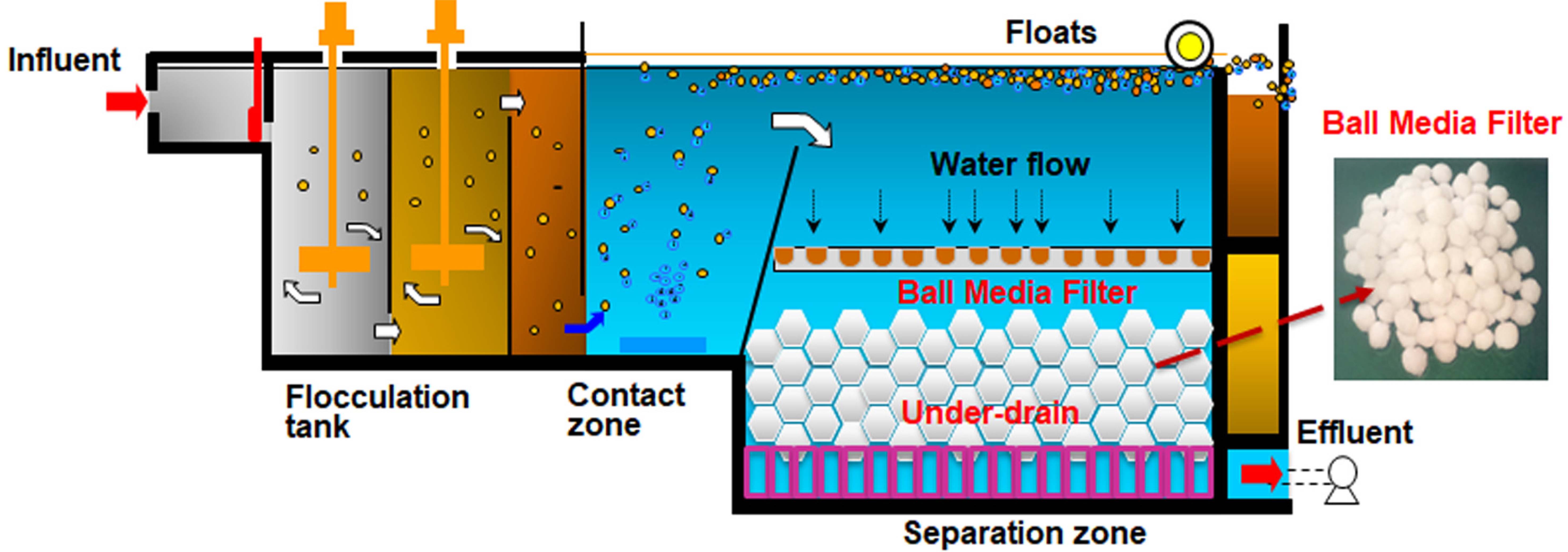์ ์กฐ ๋ฐ ๊ณ ํƒ๋„์— ๋Œ€๋น„ํ•˜์—ฌ ์„ค์น˜ํ•œ DAF๋ฅผ ์ €ํƒ๋„์‹œ์—๋„ ํšจ๊ณผ์ ์œผ๋กœ ์šด์˜ํ•˜๊ณ ์ž, DAF ํ•˜๋ถ€์— ์—ฌ๊ณผ ์†๋„๊ฐ€ ๋น ๋ฅธ Fiber ball์„ ์ ์šฉํ•œ ํ•˜์ด๋ธŒ๋ฆฌ๋“œ ํ˜•ํƒœ์˜ ๋ถ€์ƒ ์—ฌ๊ณผ ์‹œ์Šคํ…œ์œผ ๋กœ์„œ DABF๋ฅผ ๊ฐœ๋ฐœํ•˜์˜€๋‹ค. ์ผ๋ฐ˜์ ์œผ๋กœ ์—ฌ์žฌ ๋ฐฉ์‹์˜ ์—ฌ๊ณผ์„ค ๋น„์˜ ์—ฌ๊ณผ ์œ ์†์€ DAF์˜ ์ˆ˜๋ ฅํ•™์  ๋ถ€์ƒ ์†๋„๋ณด๋‹ค ๋‚ฎ์•„ ์  ์šฉ์ด ์–ด๋ ค์› ์œผ๋‚˜, DABF๋‚ด์˜ BF๋Š” ์—ฌ๊ณผ ์œ ์†์ด ๋น ๋ฅด๋ฏ€๋กœ, ์ ์ ˆํ•˜๊ฒŒ ์กฐํ•ฉ์‹œ์ผฐ๋‹ค.