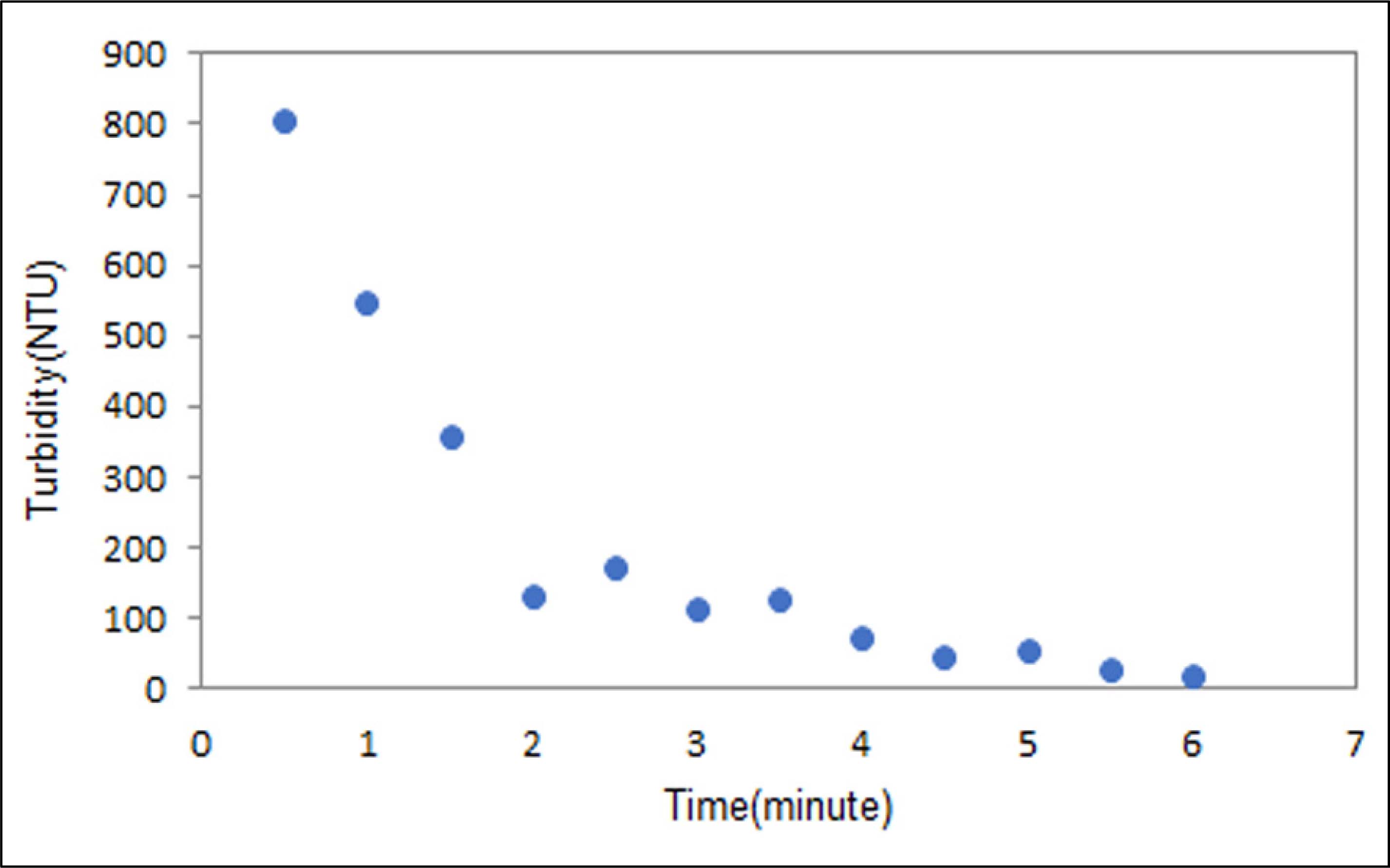 Parameter pH Temp. (ยฐC) Turbidity (NTU) TSS (mg/L) Conductivity (ยตS/cm) TDS (mg/L) TOC (mg/L)