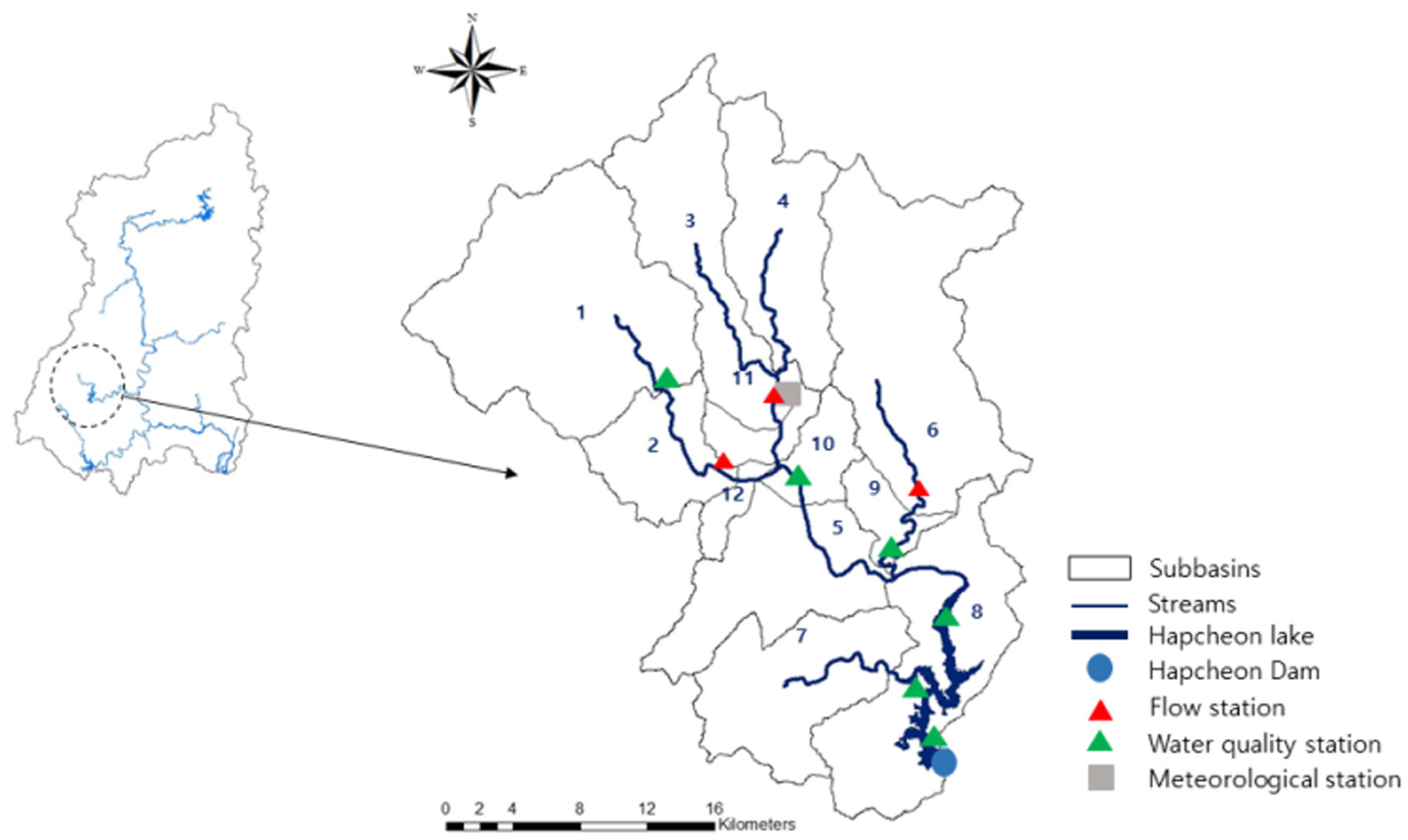 연구 대상유역인 합천호는 경상남도 합천군 대병면에 위치 하고 있으며, 낙동강 하류지역의 생활 및 공업용수, 농업용 수를 공급하고 산업 시설과 농경지의