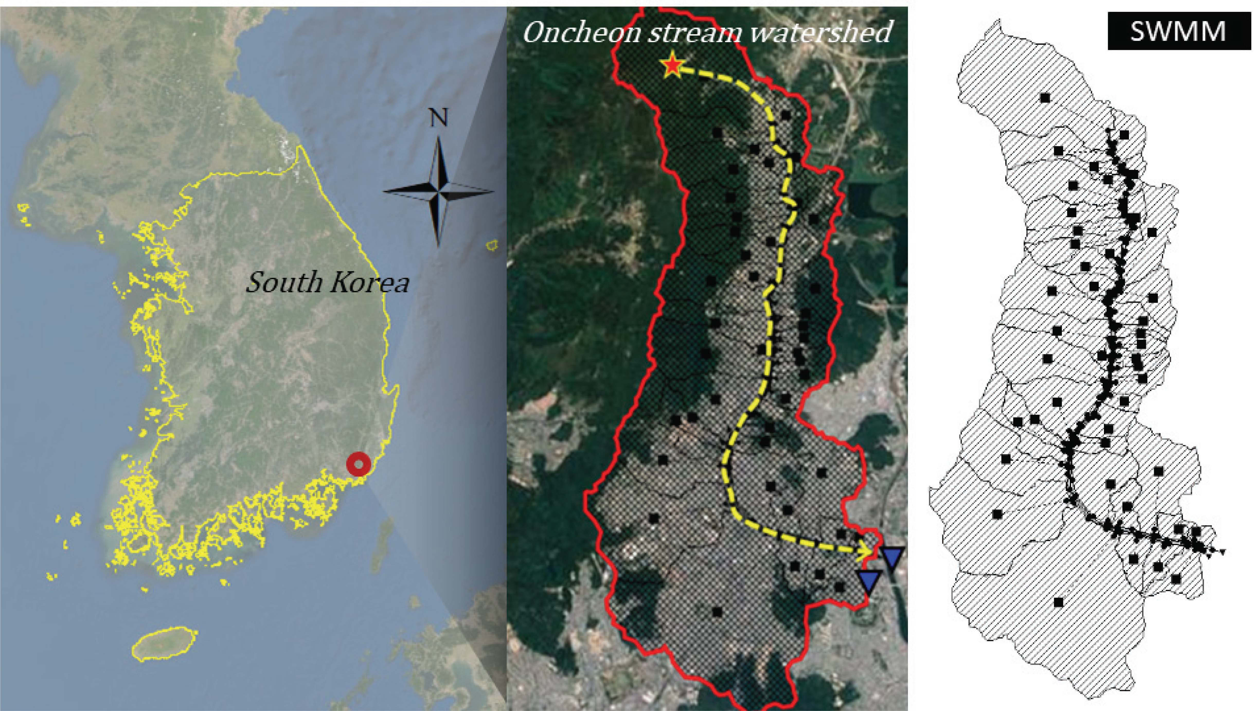 ์กฐ๊ฑด์ ๋งค๊ฐ๋ณ์๋ก ๋ฐ ์ํ ํ, LID ์์ค์ ์ค์น์ ๋ฐ๋ฅธ ํจ๊ณผ๋ฅผ ์ดํด๋ณด๋ ๊ฒ์ด ํ ์ํ๋ค.์ด๋ฅผ ์ํด ๋ณธ ์ฐ๊ตฌ์ ์ฌ์ ์ฐ๊ตฌ์ธ Kim et al. (2019)์ ์ ์จ์ฒ์ฒ ์ ์ญ์ ๊ด์ธก ๊ธฐ์์๋ฃ, ์ ๋ ๋ฐ ์์ง ์๋ฃ๋ฅผ ์ด์ฉ ํ์ฌ ๊ตฌ์ถ๋ EPA-SWMM๊ณผ LID ์์ค ์ค์น ์๋๋ฆฌ์ค๋ฅผ ๊ธฐ ๋ฐ์ผ๋ก ์จ์ฒ์ฒ ๋ฐฐ์๋ถ๊ตฌ์