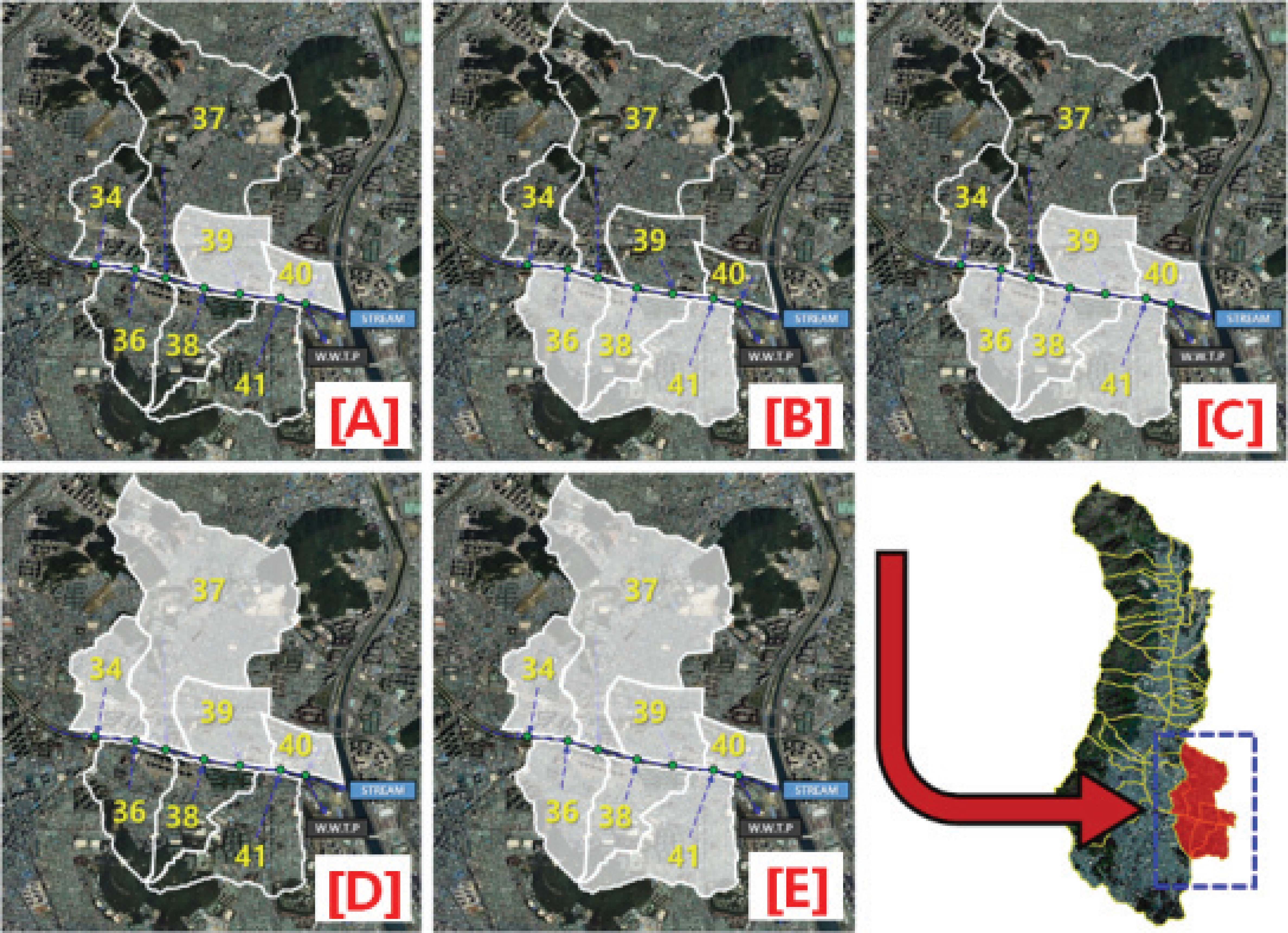 System, UIS) ๋ฐ ํ์๋์ ๋น๊ธฐ๋ณธ๊ณํ์ ์๋ฃ๋ฅผ ๋ฐํ์ผ๋ก ์จ์ฒ์ฒ ๋ฐฐ ์๋ถ๊ตฌ๋ฅผ EPA-SWMM์ ์ด์ฉํ์ฌ ์ด 43๊ฐ์ ์์ ์ญ์ผ๋ก ๊ตฌ์ฑํ์๋ค(Fig.