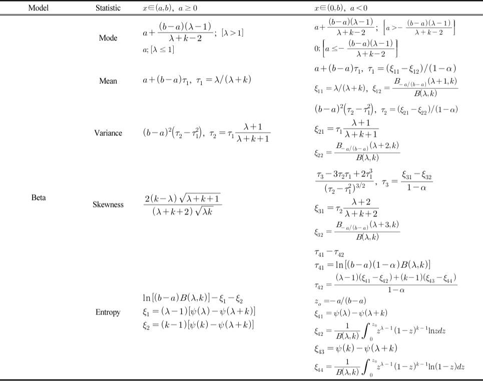 Appendix 2. Mode, mean, variance, skewness, and differential entropy of probability distribution models
